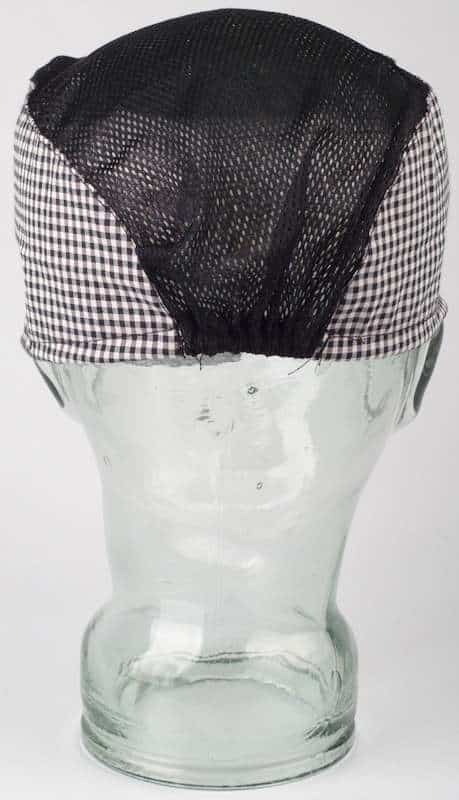 Шапка боне пепит с черен тюл и ластик.  Широчината на бонето се регулира с ластик за по-голямо удобство. Този модел се предлага и в комбинация от бял тюл. Боне пепит с черен тюл е много подходящо за работници в кухня и в сферата на хранителновкусовата промишленост. Богато разнообразие от бонета и шапки за готвачи произведени в България. Всички шапки, бонета и престилки могат да бъдат бродирани с вашето лого, или надпис. Какво представлява компютърната бродерия може да научите от тук.