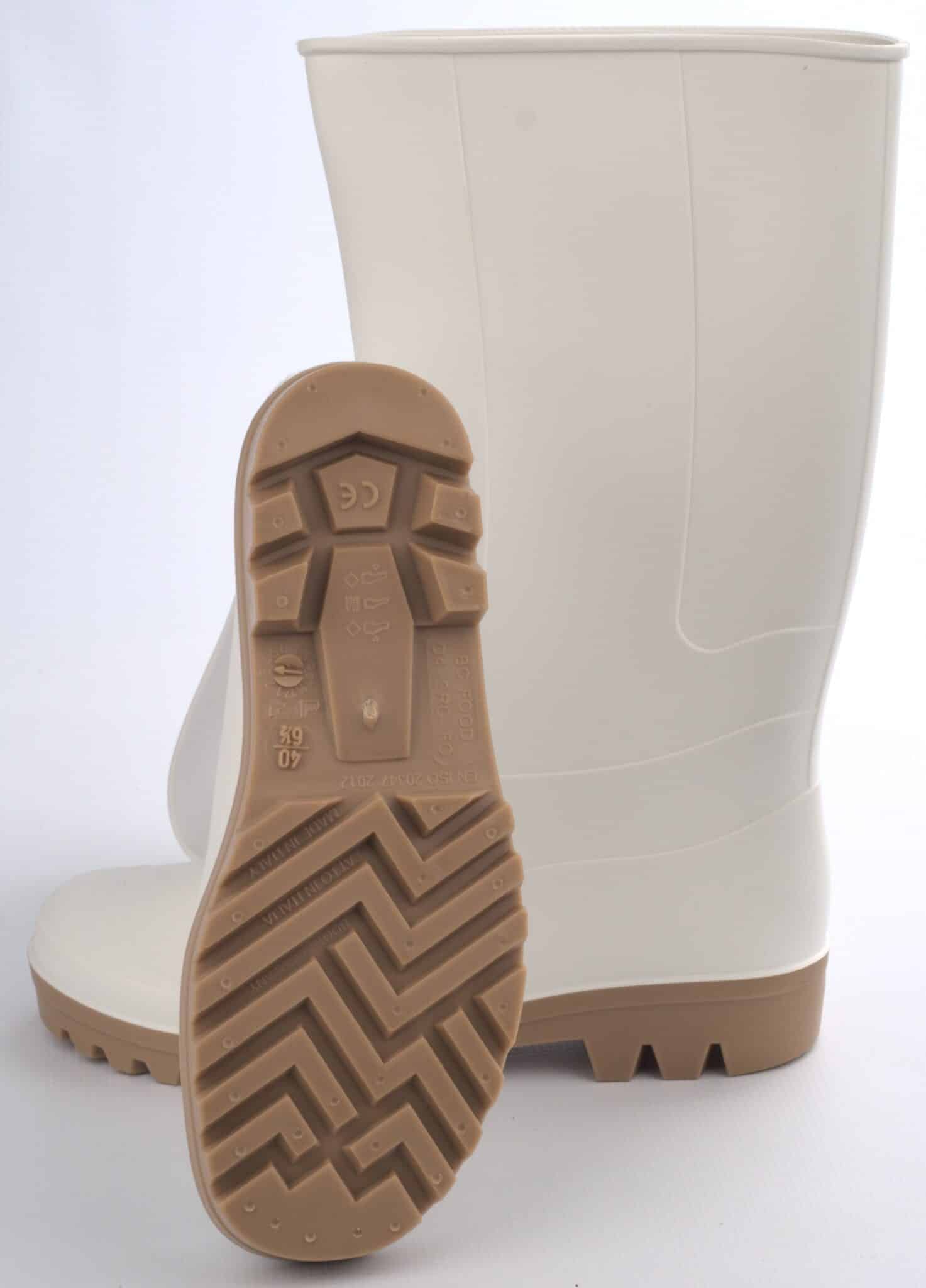 Ботуши от нитрил с височина 38 см., бели на цвят. Ботушите са устойчиви на растителни и животински мазнини. Подходящи са за употреба при работа в месарски цехове, консервни цехове, при работа в автосервизи и много други.