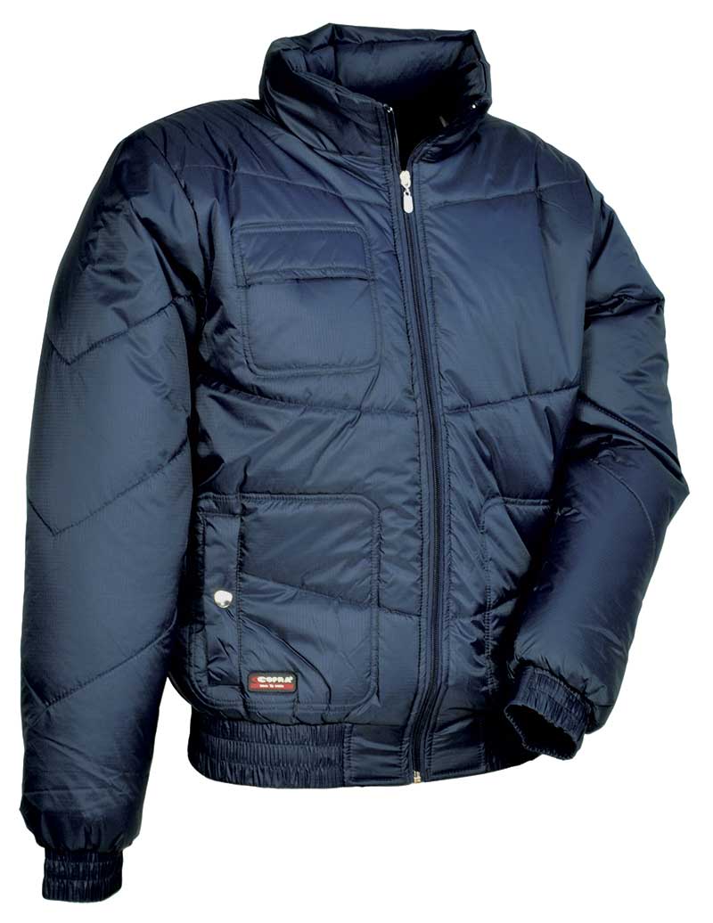 Ватирано работно яке на престижната марка Cofra – модел Stafford. Мъжкото яке Stafford се предлага в цвят нави. Има общо 3 джоба: един на гърдите, който се затваря с велкро и два широки предни джоба с копчета. За допълнителен комфорт и удобство работното яке има еластична талия и маншет, скрита в яката качулка и вътрешен джоб с цип. Ватирано яке Stafford е изключително подходящо за работници в селското стопанство, летища, строителна индустрия, лека промишленост, транспортни и куриерски фирми.