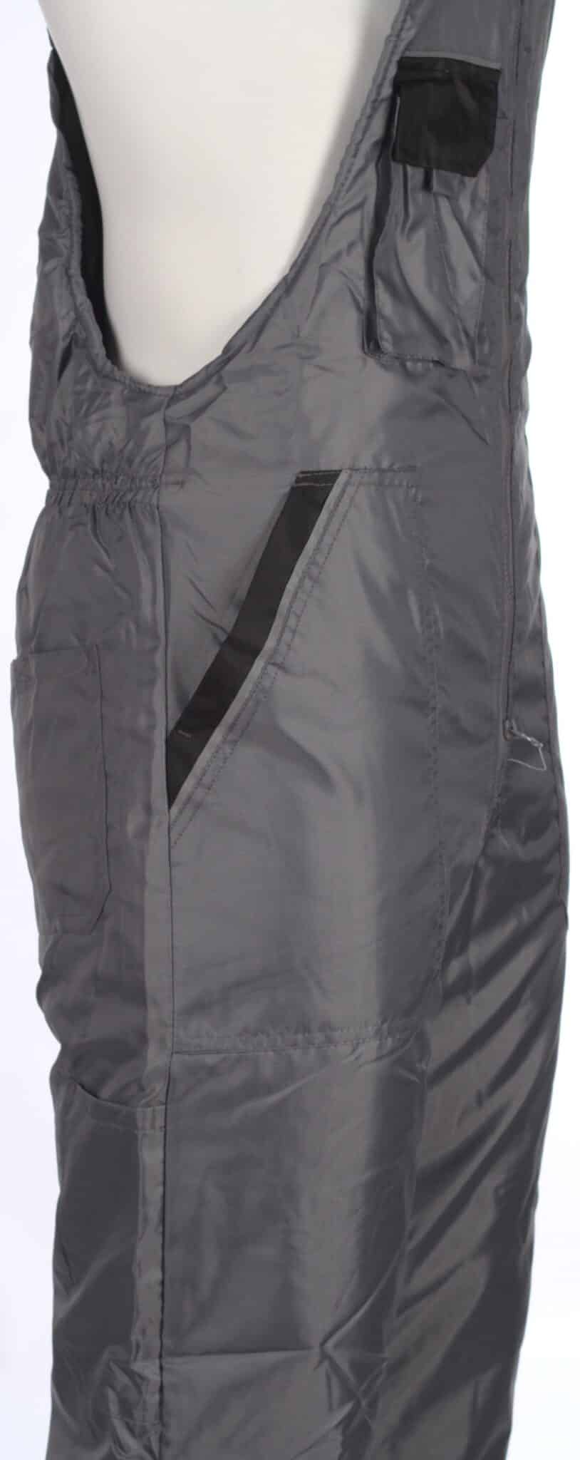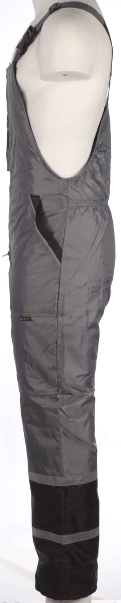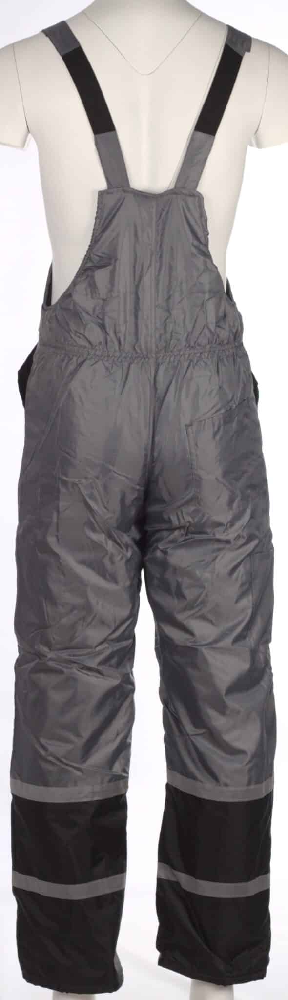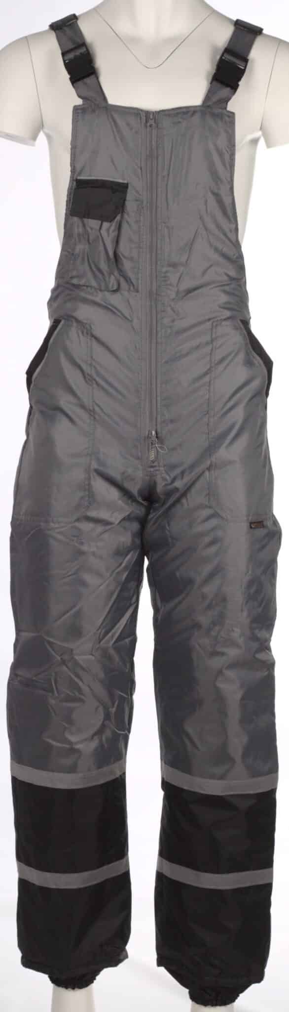 Ватиран костюм Колинс, сив на цвят. Състои се от работно яке и полугащеризон, изработени от промазка. Гащериознът е оборудван с четири джоба – два странични и два горни. Закопчаването на якето е с цип и велкро, има ластичен маншет на ръкавите. Полугащеризонът е с два странични джоба и един горен за телефон. Има предно закопчаване с цип. Презрамките на полугащеризона са с възможност за регулиране. Комплекта има светлоотразителни ленти на якето и на полугащеризона.