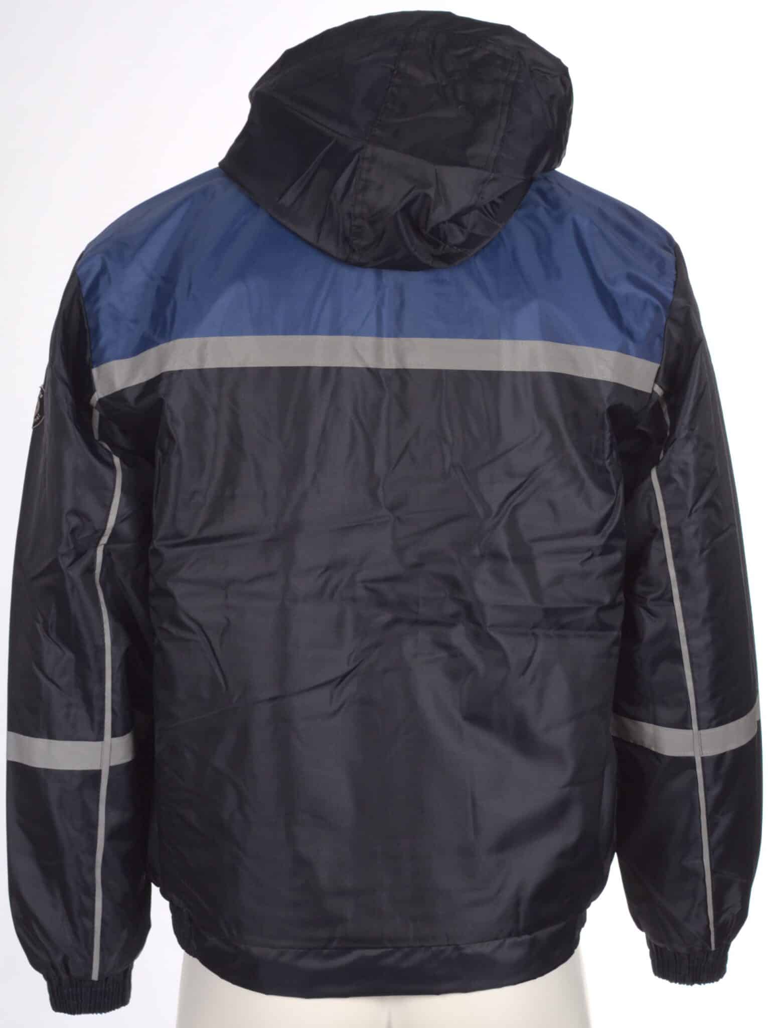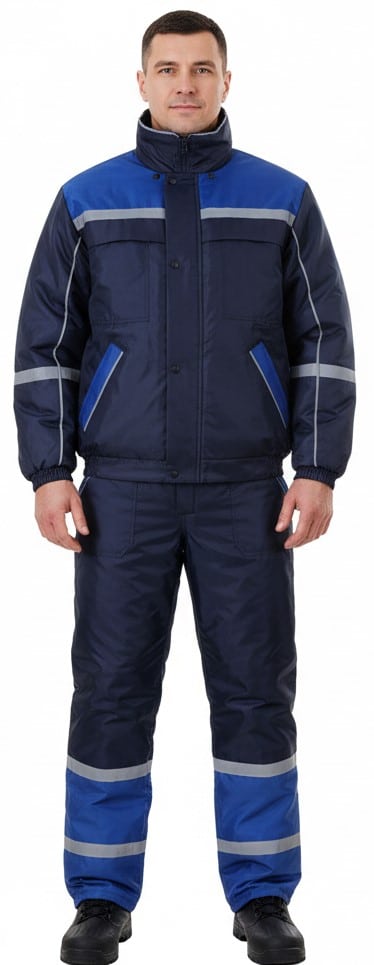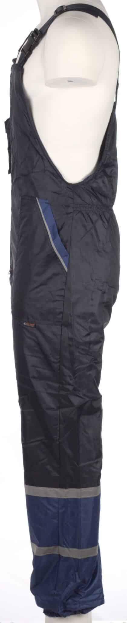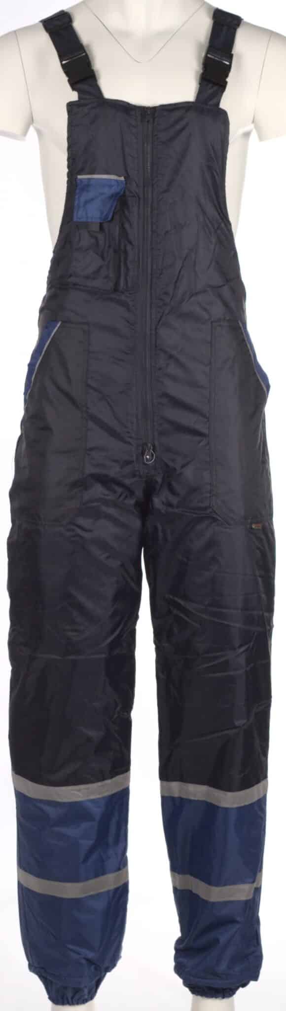 Ватиран работен костюм модел Колинс изработен от промазка в тъмносин цвят. Моделът се състои от яке и полугащеризон. Якето има общо пет джоба – два странични джоба, два нагръдни джоба с капаци и един вътрешен джоб от ляво. Закопчаването на якето е отпред по средата с цип и пластрон с тик-так копчета. Ръкавите са завършени с ластични маншети за по-добра изолация от външно влияние. Качулката е сваляща се, може да се прибира в яката и има опция за пристягане. Полугащеризонът има удължен гръб и ластик в кръста. Изработен е с общо четири джоба. Има два странични джоба, един нагръден джоб за мобилен телефон с капак и един заден джоб от дясната страна. Презрамките на полугащеризона са регулируеми и ластични. Комплектът ви осигурява добра видимост през нощта чрез светлоотразителните ленти на якето и на полугащеризона. Костюм Колинс тъмносин може да разгледате и във фирмените магазини на Тики в страната. Предлагаме модела и във вариант от сива промазка.