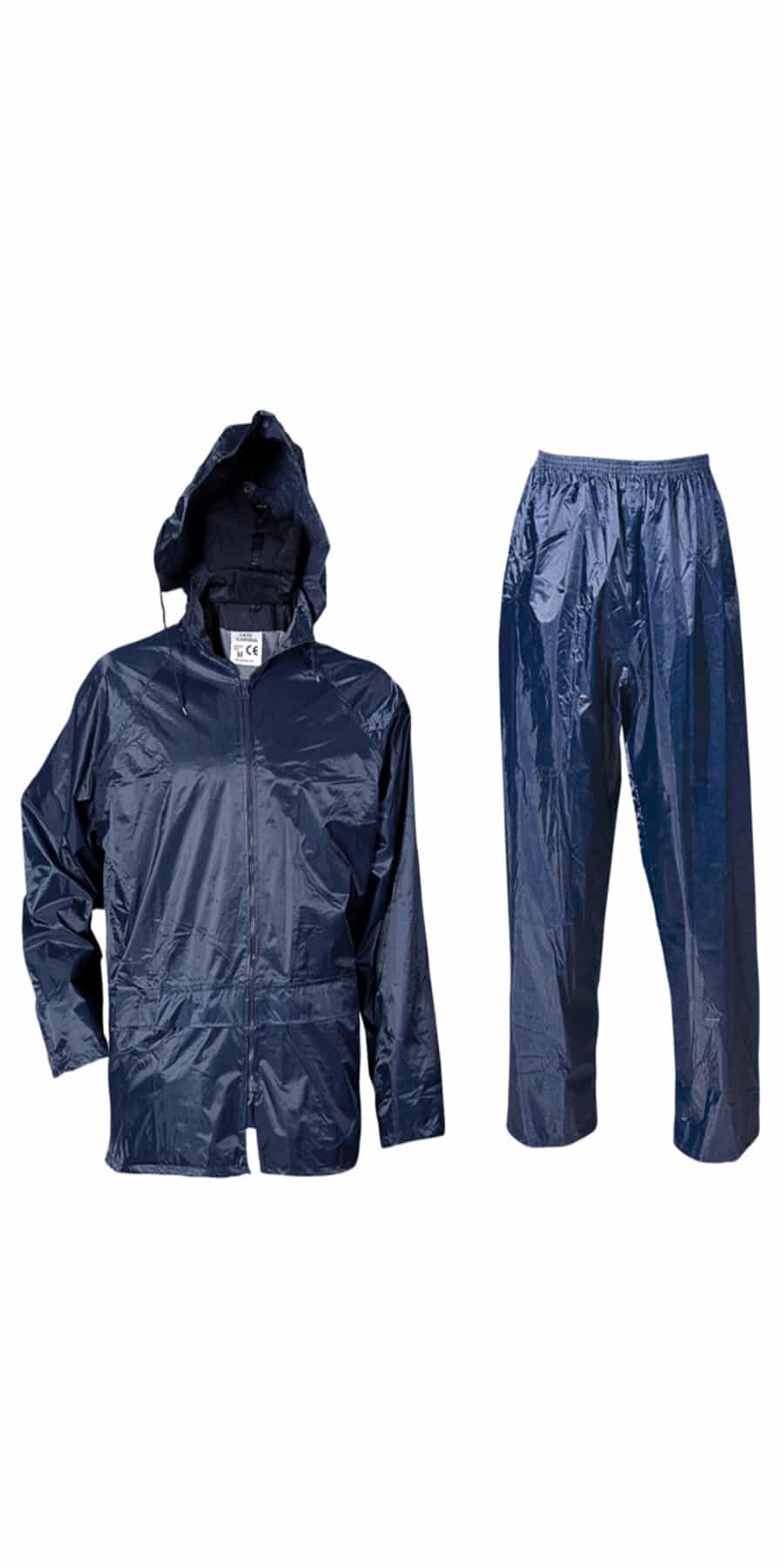 Водозащитен костюм изработен от ПВЦ/ полиамид с качулка, обемни джобове и закопчаване с цип. Панталонът има с ластик в кръста. Комплектът е подходящо работно облекло през дъждовния период от годината, ако работите на открито. Можете да го използвате и за лина употреба като част от туристическата си екипировка. Водозащитен костюм ПВЦ при нас ще намерите и в тъмнозелен цвят.
