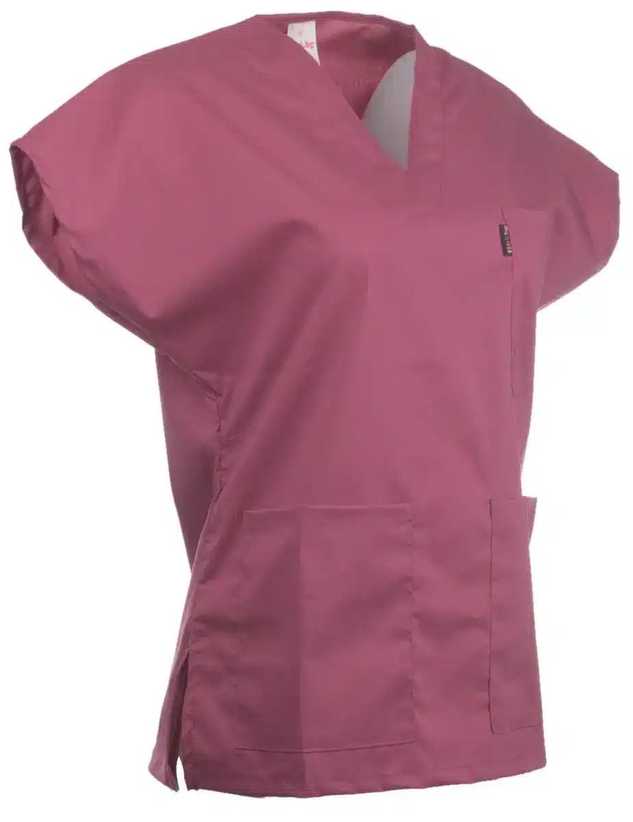 Дамска вталена туника с нежен цвят малина. Изработена е от плат с еластичност за повече комфорт по време на дългите и напрегнати работни дежурства. Осигурете си свобода на движенията в комбинация с елегантна професионална визия с моделите на Тики Работно облекло. За своите клиенти подбираме леки материи, еластични и лесни за поддръжка, за да ви улесним максимално в работното ежедневие. Вталена туника в цвят малина е снабдена с три предни джоба за лесно съхранение на аксесоари от първа необходимост. Идеална е за работно облекло на всяка дама работеща в сферата на здравеопазването, козметичните и фризьорските услуги. Може да я комбинирате с втален панталон в цвят малина и с подходящ модел сабо. За завършена работна визия ви предлагаме и възможност за брандиране на медицинската униформа. изработваме лога и рекламни надписи чрез компютърна бродерия и дигитален печат.