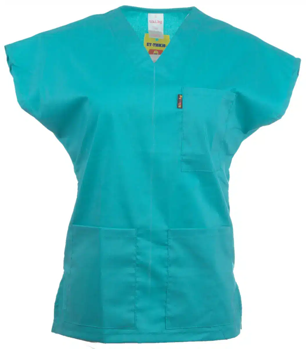 Медицинска вталена туника в изкусителен цвят мента. Отличен избор за работна униформа на всяка дама работеща в сферата на здравеопазването или козметичните и фризьорските услуги. Туниката е подходяща още за масажистки, за рехабилитаторки, персонал в детски заведения и други. Доверете ни се за комфорт и лекота в работното ежедневие, като изберете вталена туника в цвят мента. Може да разгледате и останалите ни предложения за медицински туники. Изработваме и медицински облекла с дигитален печат. Стараем се да ви предлагаме разнообразие на модели в комбинация с практичност и лекота по време на работа. Във фирмените магазини на Тики може да намерите всичките ни модели на медицинско облекло, както и да ги съчетаете с подходящ модел медицинско сабо. За бърза и лесна поръчка сме на ваше разположение и в онлайн магазина на посочените телефони и имейл.