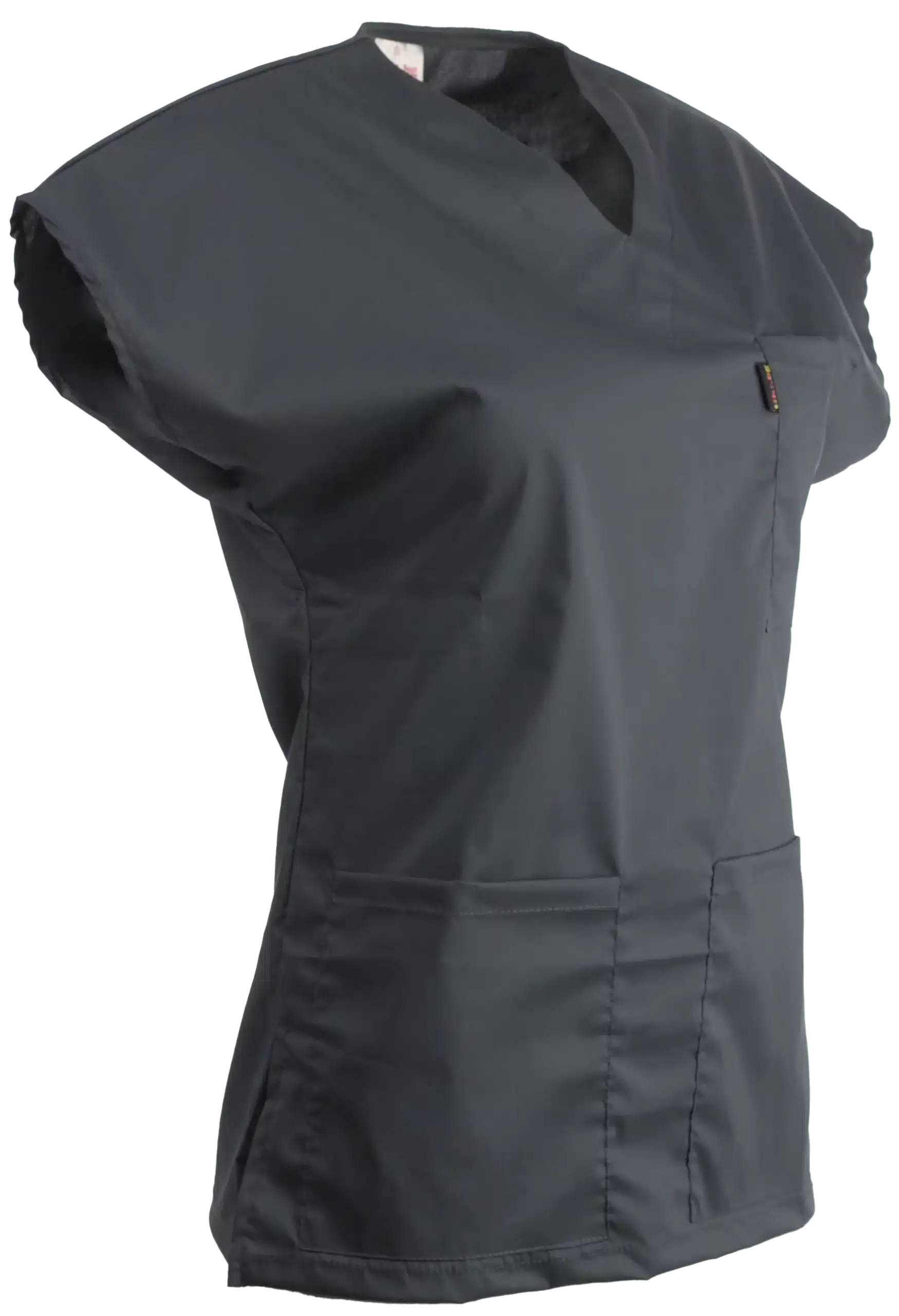 Медицинска дамска вталена туника с къс ръкав сива на цвят. Туниката е перфектното решение за медицински работници, фризьори, козметички и други професии. Вталена туника сива на цвят има три практични джоба и остро деколте.  Моделът е изработен  от изключително приятна на допир материя за лекота по време на работното ви ежедневие. Еластичността на плата създава комфорт и осигурява свобода на движението по време на работата. Можете да съчетаете тази туника с подходящ втален медицински панталон. Предлагаме изгодно и медицински втален комплект в сив цвят. Завършете работната си визия, като изберете и подходящо медицинско сабо. Стремим се да ви осигурим качествено медицинско облекло от български производител на много изгодни цени. Нашите консултанти са на разположение на посочените телефони и имейл в работно време, за да ви ориентират за правилните размери.