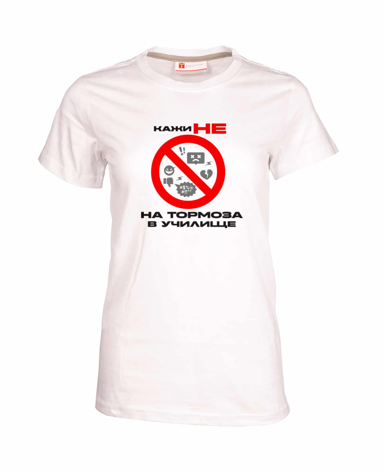 Стилен и смислен избор за жените, които искат да изразят позиция чрез облеклото си. Изработена от 100% памук, тази тениска е изключително мека, дишаща и щадяща кожата – идеална за ежедневието. Благодарение на модерната DTF технология, посланието ѝ остава ясно и устойчиво дори след множество изпирания. Кройката е съобразена с дамската фигура, а класическият бял цвят я прави лесна за съчетаване с всякакви дрехи. Подходяща е както за училище и работа, така и за свободното време. Дамска тениска без насилие – в училище не е просто удобна дреха – тя е послание за подкрепа, разбиране и нулева толерантност към агресията. Предлага се в размери от XS до 2XL.