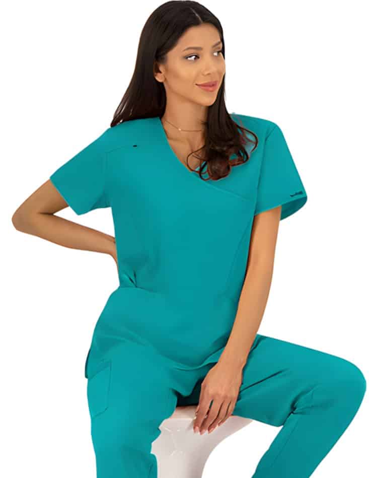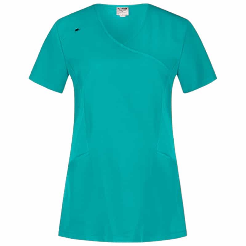 Дамска туника Джустина в модерен цвят тюркоаз с къс ръкав. Изработена е от 72% полиестер, 21% вискоза и 7% еластан. Материята е лека, дишаща и изключително приятна на допир. Моделът е с остро деколте и два джоба отстрани. Има халка за бадж в горната дясна част. За допълнително удобство и свобода на движенията през целия работен ден, туниката има ластични, полиестерни елементи на гърба и отстрани. Дамска туника Джустина в цвят тюркоаз е много подходяща за медицинско облекло на ветеринарни лекари , мединцински сестри, фармацевти, както и служителите в естетични центрове.