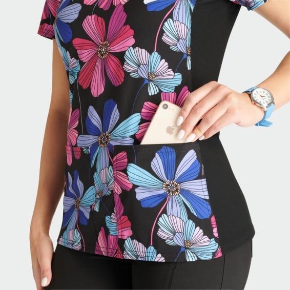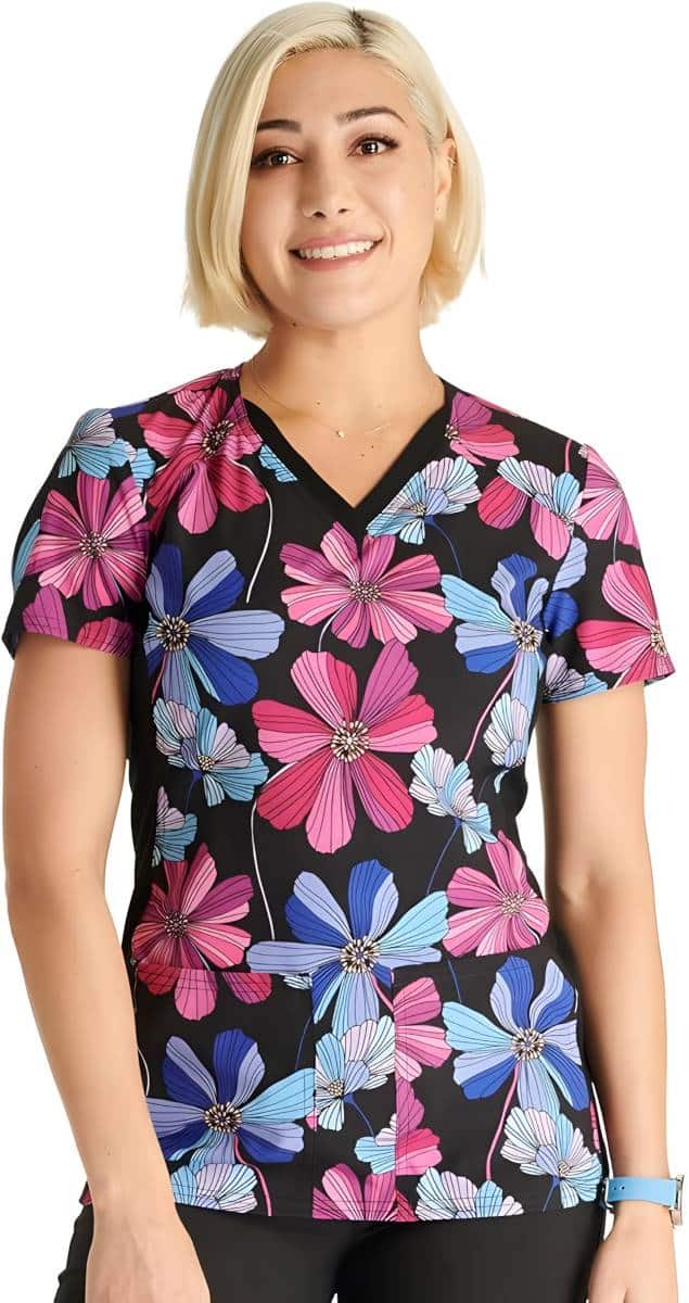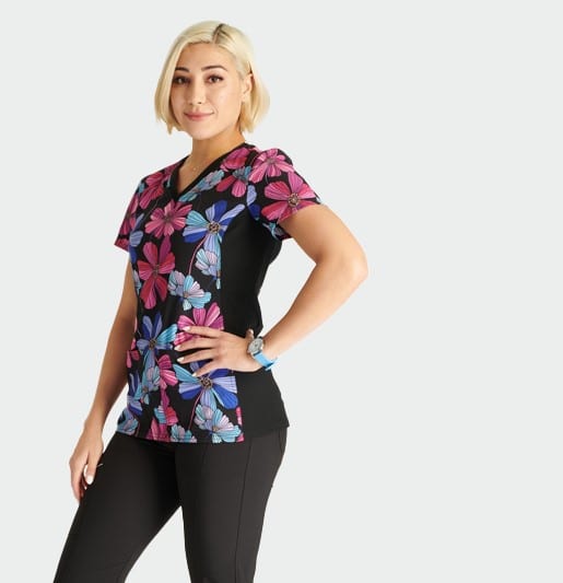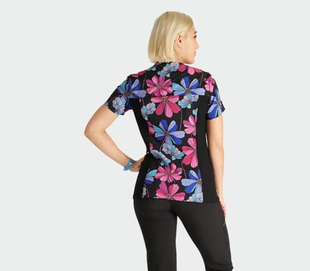 Комбинирайте Дамска туника Флора – Cherokee с едноцветни медицински панталони от нашия онлайн магазин, както и с удобнo сабо за цялостна визия.
