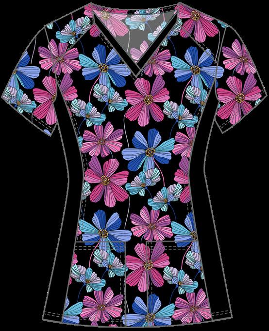 Дамска туника Флора – Cherokee е цветна медицинска туника с модерен дизайн, която комбинира удобство и стил в едно. Изработена от иновативна материя с висока еластичност – 52% рециклиран полиестер, 40% полиестер и 8% еластан. Материята гарантира лекота при движение и издръжливост при ежедневно носене. Плътността на плата е 175 г/м², което я прави подходяща за всички сезони.