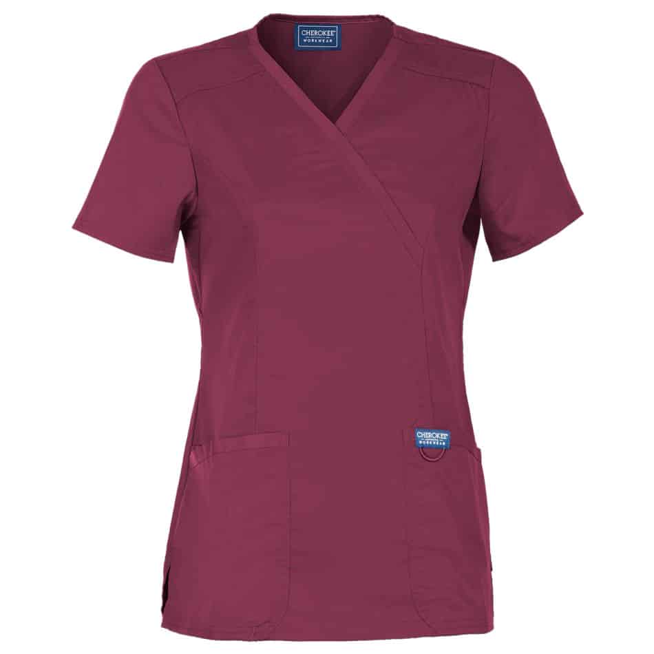 Комбинирайте дамска туника Cherokee wrap – бургунди с медицински панталон от сайта на Тики Работно облекло за цялостна визия, съобразена с изискванията на медицинския сектор.