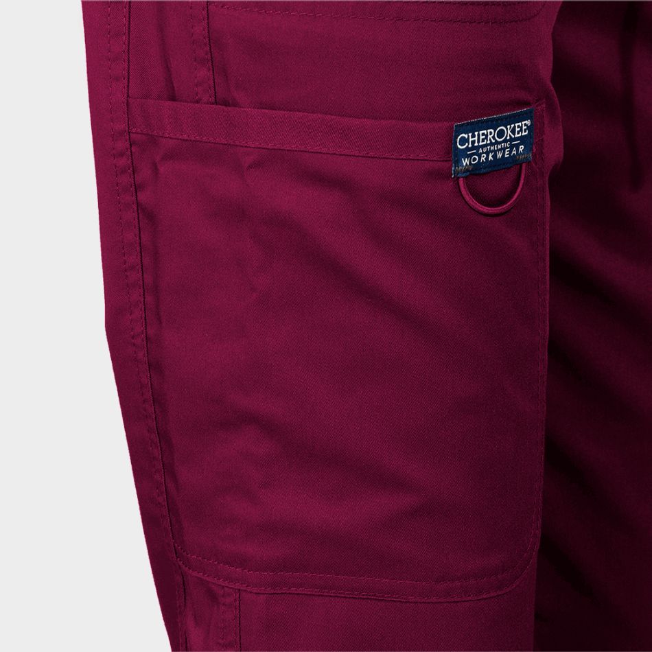 Дамски панталон Cherokee – бургунди е част от серията Revolution на марката Cherokee. Моделът е подходящ за медицински комплекти и професионални униформи. Изработен е от мек и устойчив плат със състав: 78% полиестер, 20% район, 2% спандекс. Материята има антимикробна обработка със SILVADUR™ технология. Тя осигурява допълнителна защита срещу бактерии и неприятни миризми.