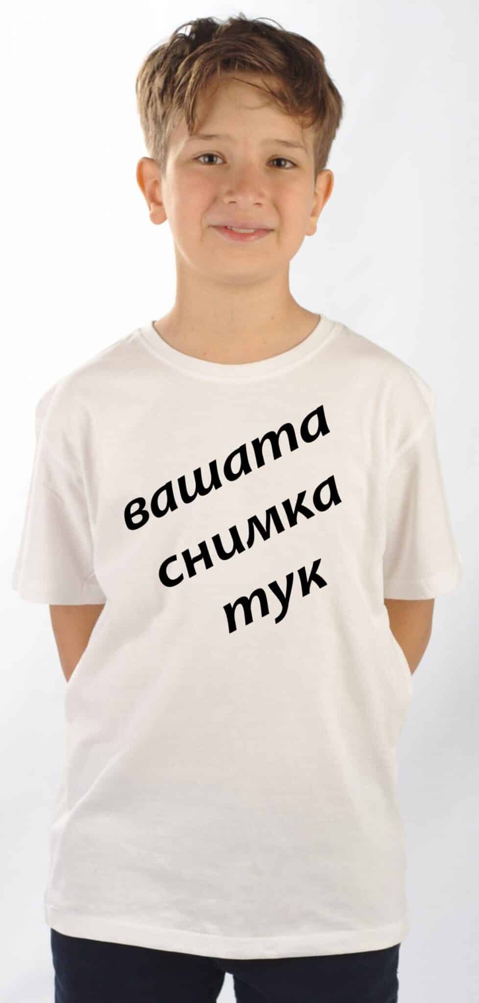 Детска памучна тениска в бял цвят с пълноцветен дигитален печат по ваш дизайн. Материята е 100% памучна и много мека. Кройката е права и свободна. Тениската се предлага в 6 размера: от 2 до 12 години. Отпечатаното изображение е изцяло по ваш дизайн. Имате възможност да поръчате тениски с печат на ваши снимки, имена, надписи, или друго изображение. Необходимо е да ни изпратите работен файл с желаното изображение за печат на email: print@tiki.bg и да посочите желания размер. Изображението следва да бъде минимум 300 dpi . Ако изискванията за работния файл не са спазени, може да ви бъде начислена предпечатна подготовка. Максималните размери за печат са 28 см хоризонтално и 30 см вертикално. Можете да поръчате тениска с печат за подарък без повод.