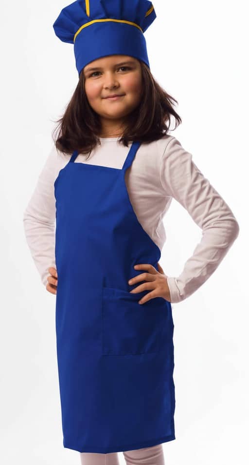 Поръчай онлайн детски комплект престилка и готварска шапка директно от български производител с бързо изпълнение и доставка. Комплектът включва детска престилка с размери 62х46 см и готварска шапка за деца тип „пуканка“. Шапката е с обиколка 52 см, в разпънато положение достига до 55 см. Материята е комбинация от памук и полиестер, устойчива и лесна за поддръжка.
