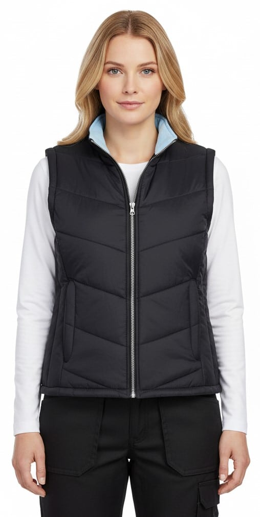 Ватиран дамски елек с вталена кройка и закопчаване с цип до края на яката. Можете да разгледате и другите ни предложения за ватирани елеци.