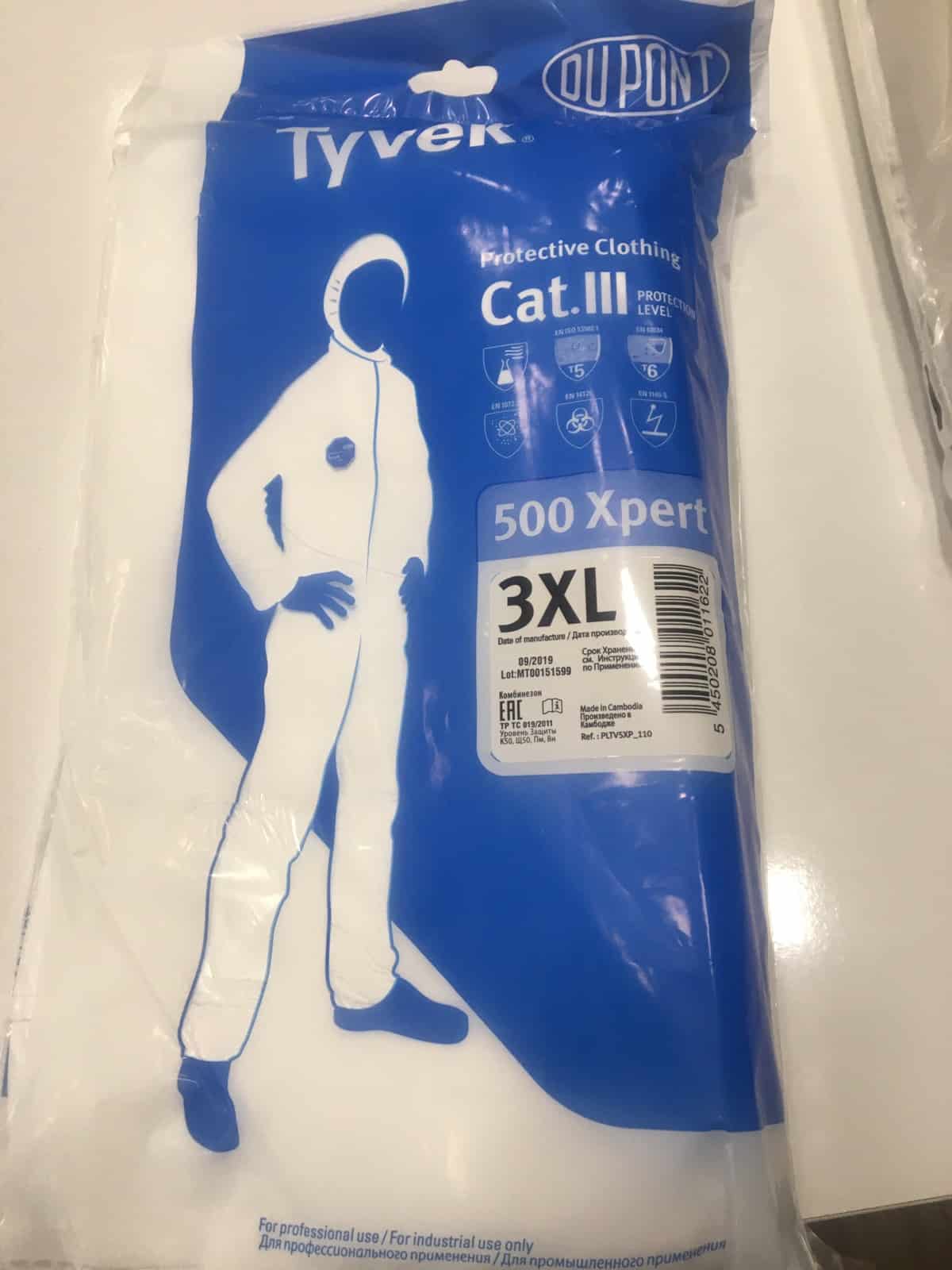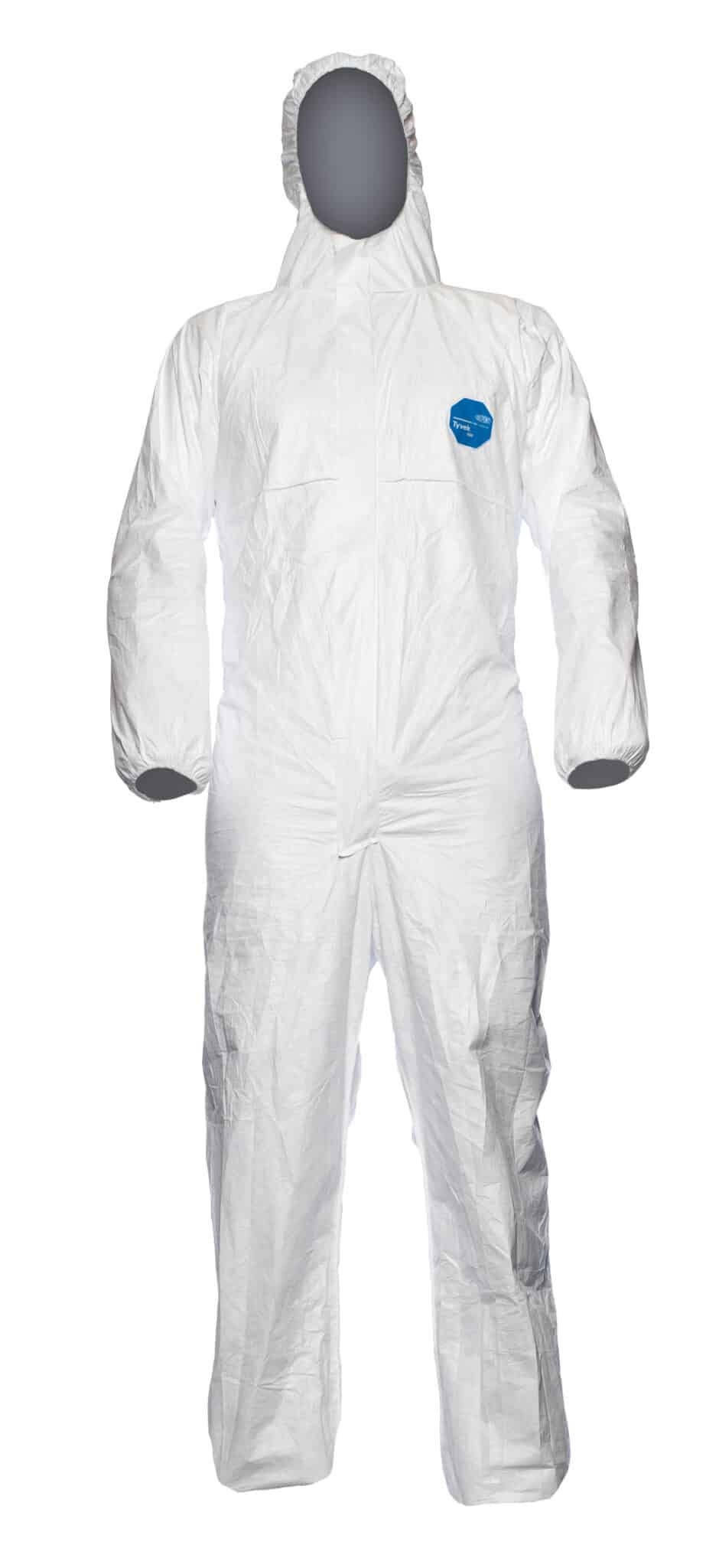 Защитен цял гащеризон модел Tyvek® 500 Xpert  – бял. Изработен е от нетъкан текстил. Моделът е химически устойчив на азбест и прах, а също така е антистатичен и водоустойчив. Ръкавите, крачолите и качулката са завършени с ластик, което осигурява много добра изолация от външната среда. Защитен гащеризон Тайвек е изработен с външни запечатани шевове. Закопчава се отпред с цип по средата, който е прикрит с пластрон. Качулката е трипластова. Дизайнът на гащеризона е ергономичен и осигурява пълна свобода на движенията. Качулката приляга много добре към контурите на лицето. Защитен гащеризон Тайвек е предназначен единствено за професионална употреба. Разгледайте и предложението ни за прахозащитен гащеризон.
