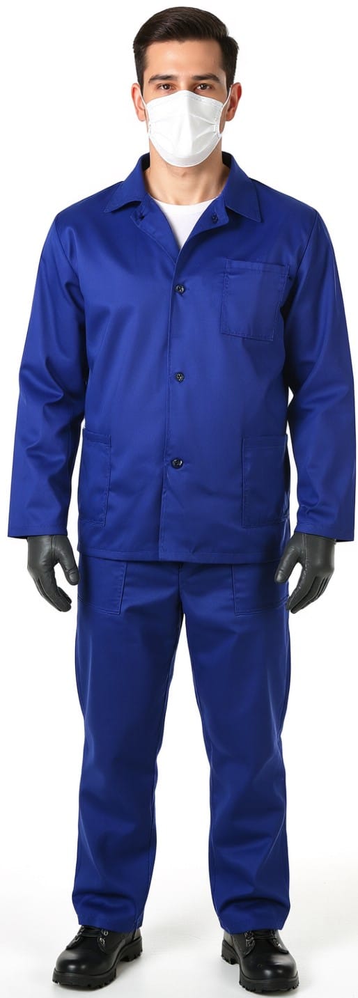 Киселиноустойчив костюм състоящ се от куртка и панталон, изработени от плат памук с полиестер с допълнителна обработка: апретура против агресивни вещества и химикали. Куртката е изработена по класическа кройка. Закопчаването е с копчета отпред и има два предни и един горен джоб. Панталонът е свободен с два предни италиански джоба отпред, един заден и един инструментален на крачола. Закопчаването е с копчета и гайки за колан. Киселиноустойчив костюм предоставяме със сертификат, удостоверяващ специфичната обработка на плата.