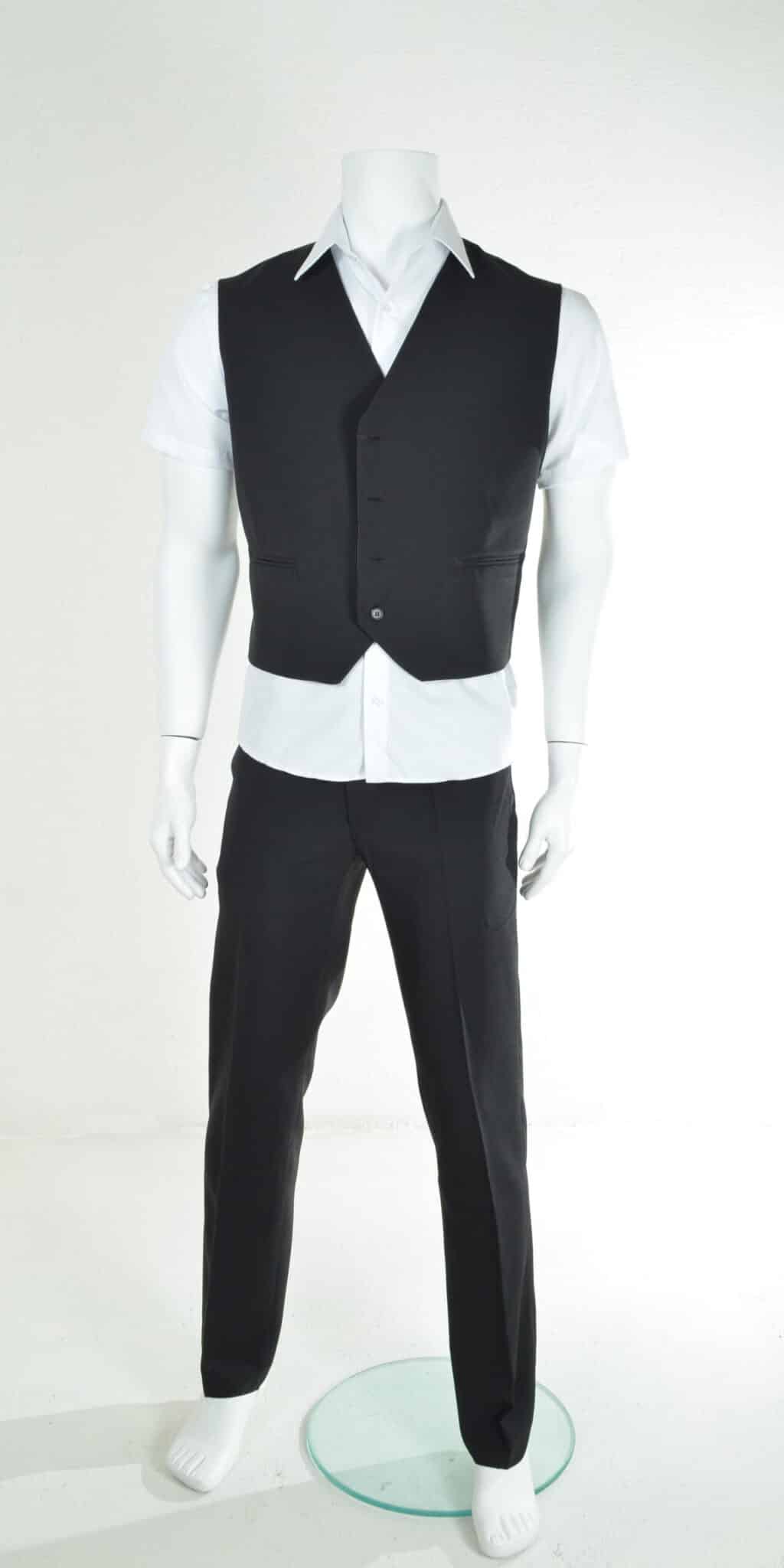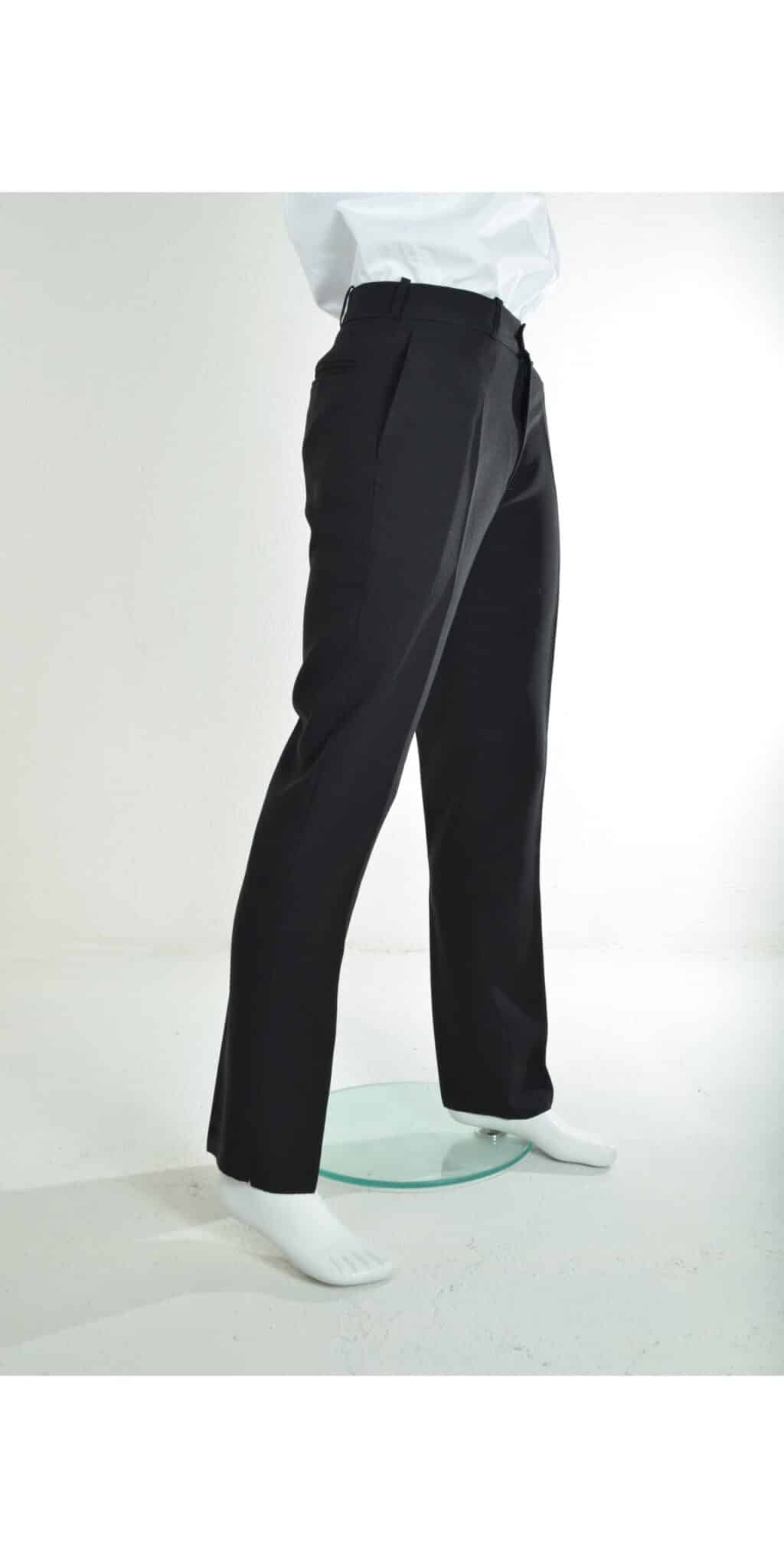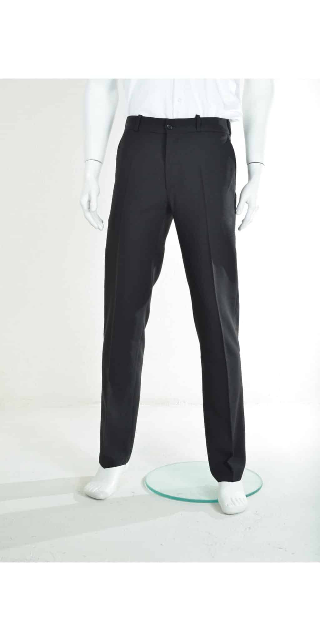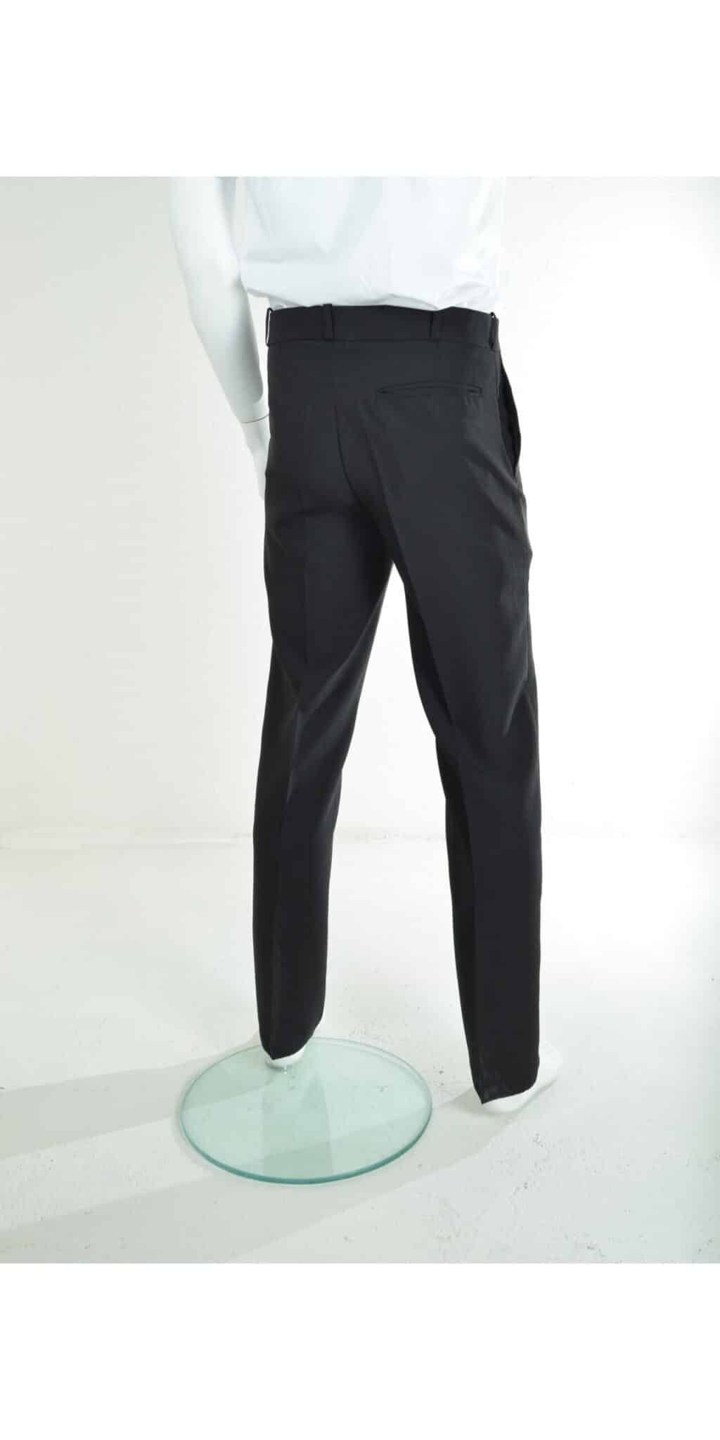 Класически мъжки панталон – черен с права класическа кройка. Изработен е от 100% полиестерен плат. Създаден е за удобство в динамична работна среда. Лесен за гладене, бързо съхнене, устойчив на петна. Изключително подходящ за работно облекло на сервитьори, бармани и хотелски персонал.