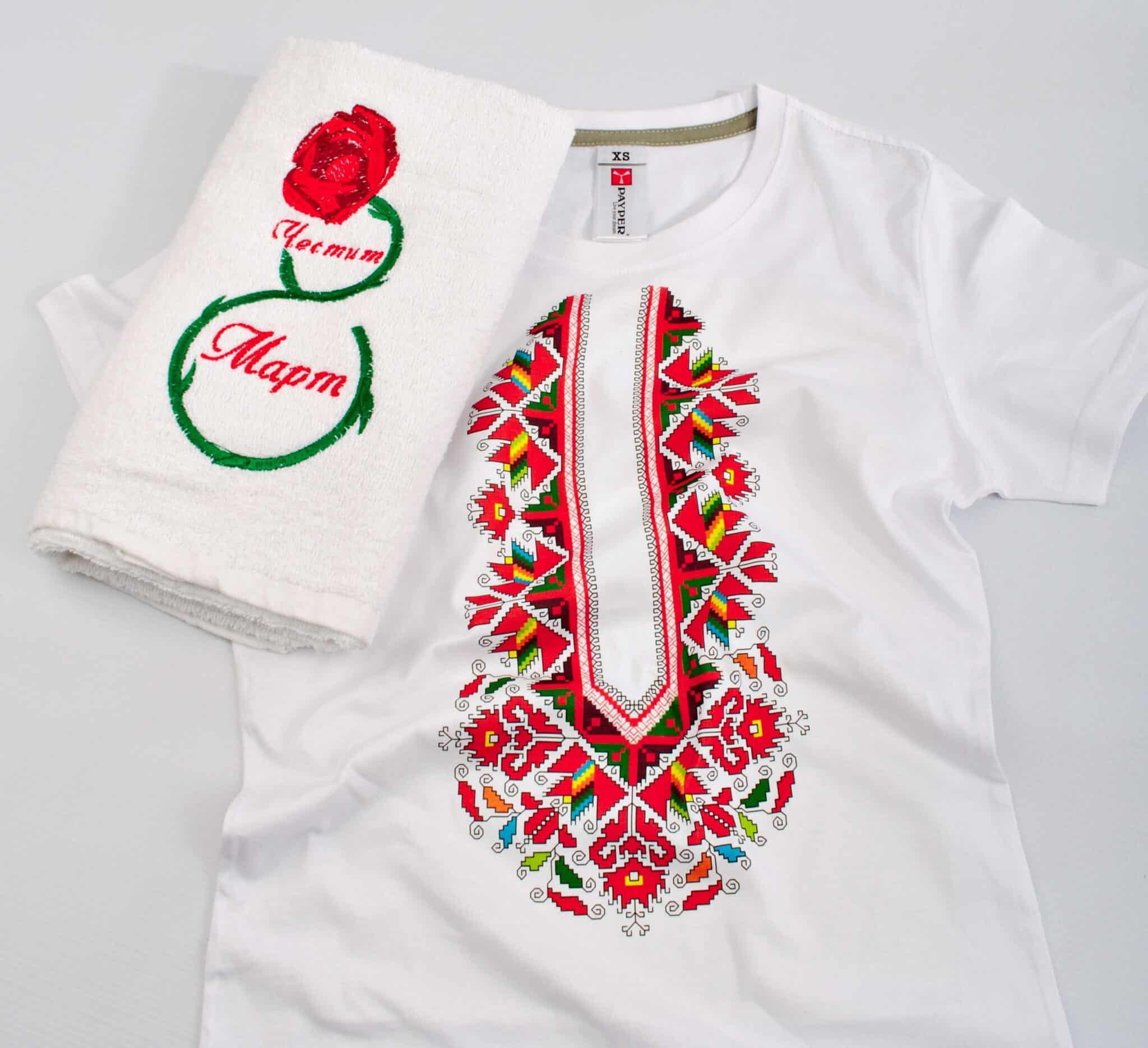 Можете също така да поръчате тениска с шевица, или кърпа с бродерия за 8-ми март и по отделно, на индивидуална цена.