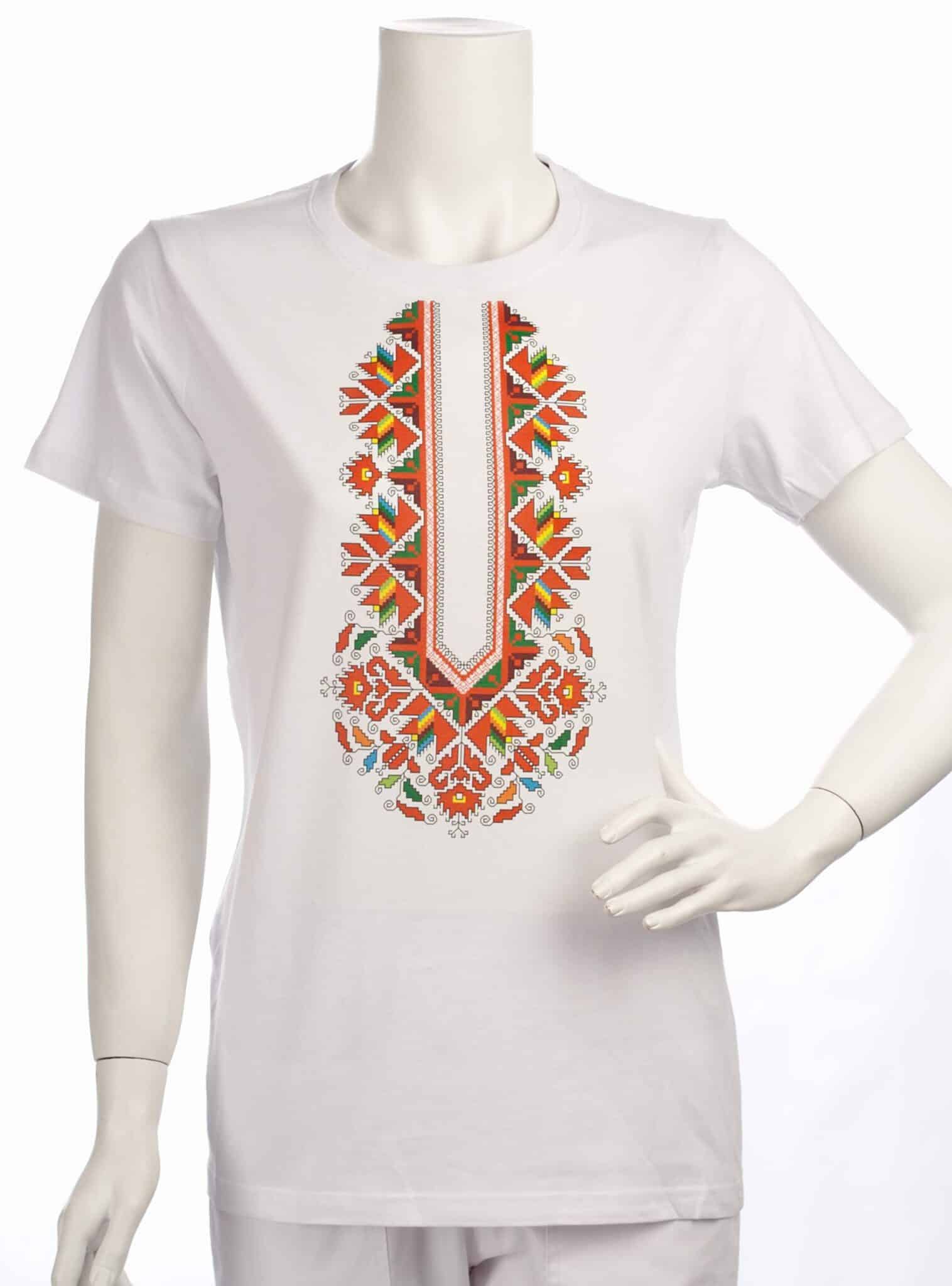 - Дамска тениска с пълноцветен дигитален печат шевица – мотив Лазарки. Имате възможност да избирате от размери: XS – XXXL