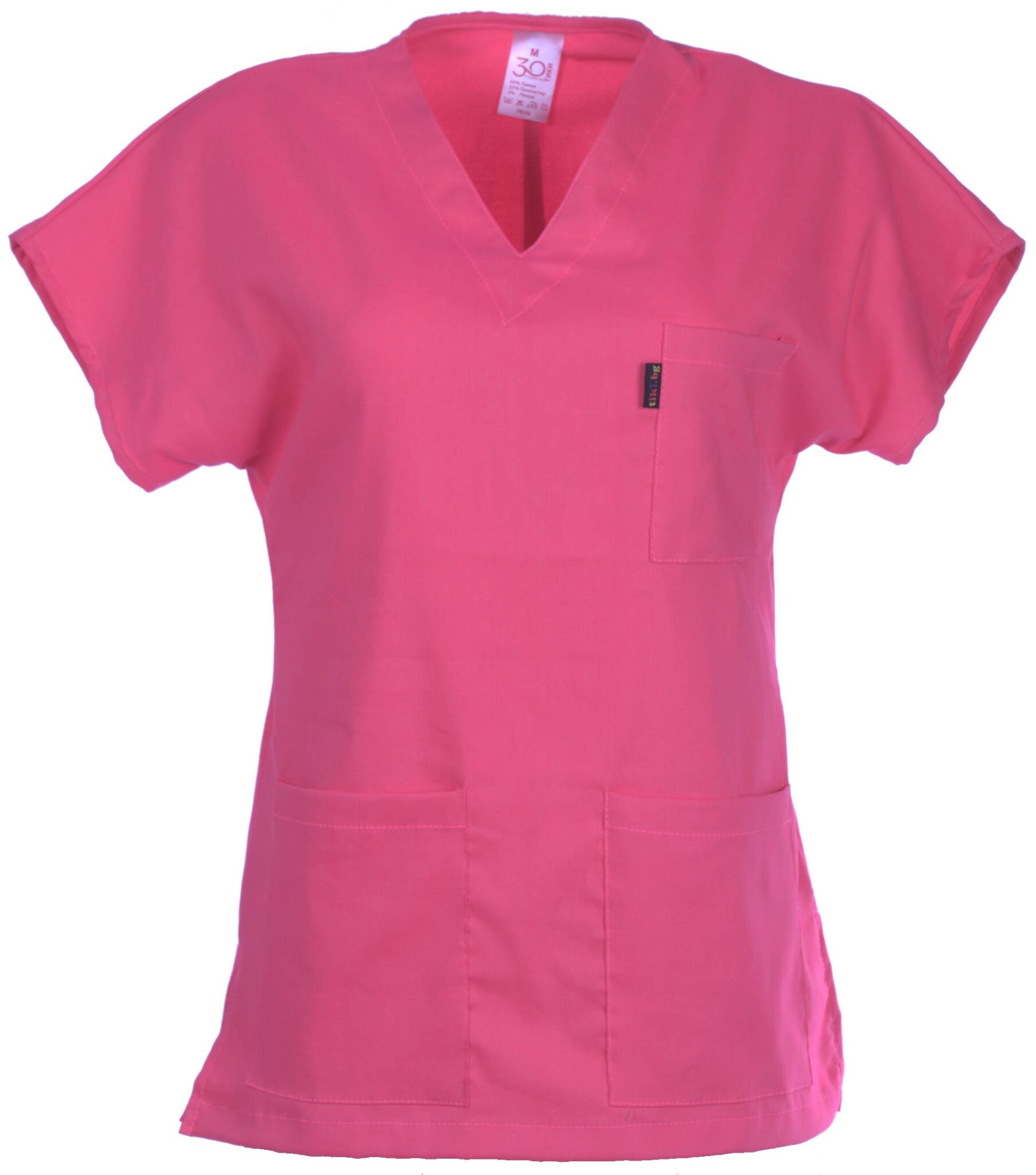 Медицински костюм с втален силует, изработен в цвят диня от мека и лека материя с еластичност. Този работен костюм е проектиран така, че да ви предостави комфорт и свобода на движенията през целия работен ден. Костюм втален – диня, се състои от туника с къс ръкав и дълъг панталон. Туниката има остро деколте и три джоба. Панталонът има ластик и връзки на кръста. Снабден е още с два италиански и един заден джоб. Костюм втален е много подходящ за медицински и саниратни работници. Подходящо облекло е също за персонал в детски заведения, кухни и козметични салони. Можете да поръчате и по отделно дамска вталена туника в цвят диня, и панталон втален в цвят диня. За завършена униформа можете да поръчате и медицинска шапка в цвят диня.