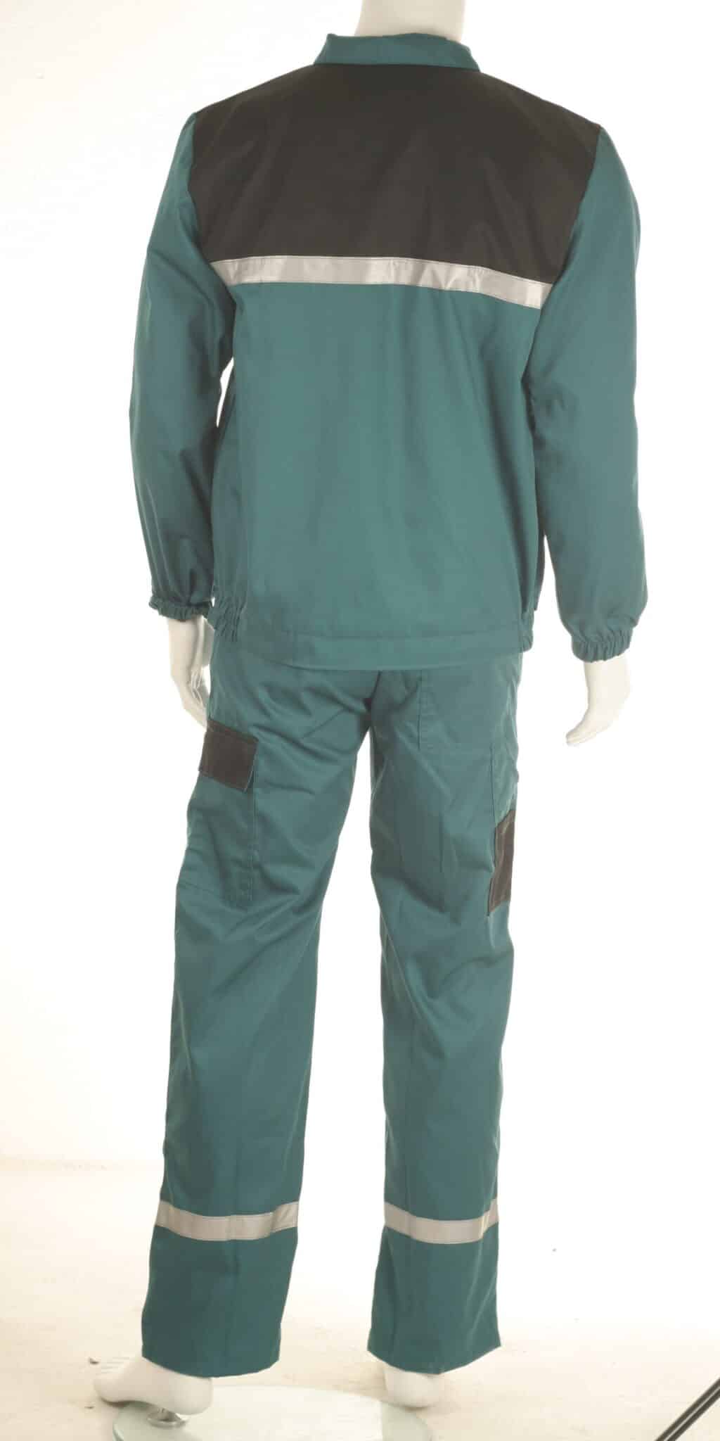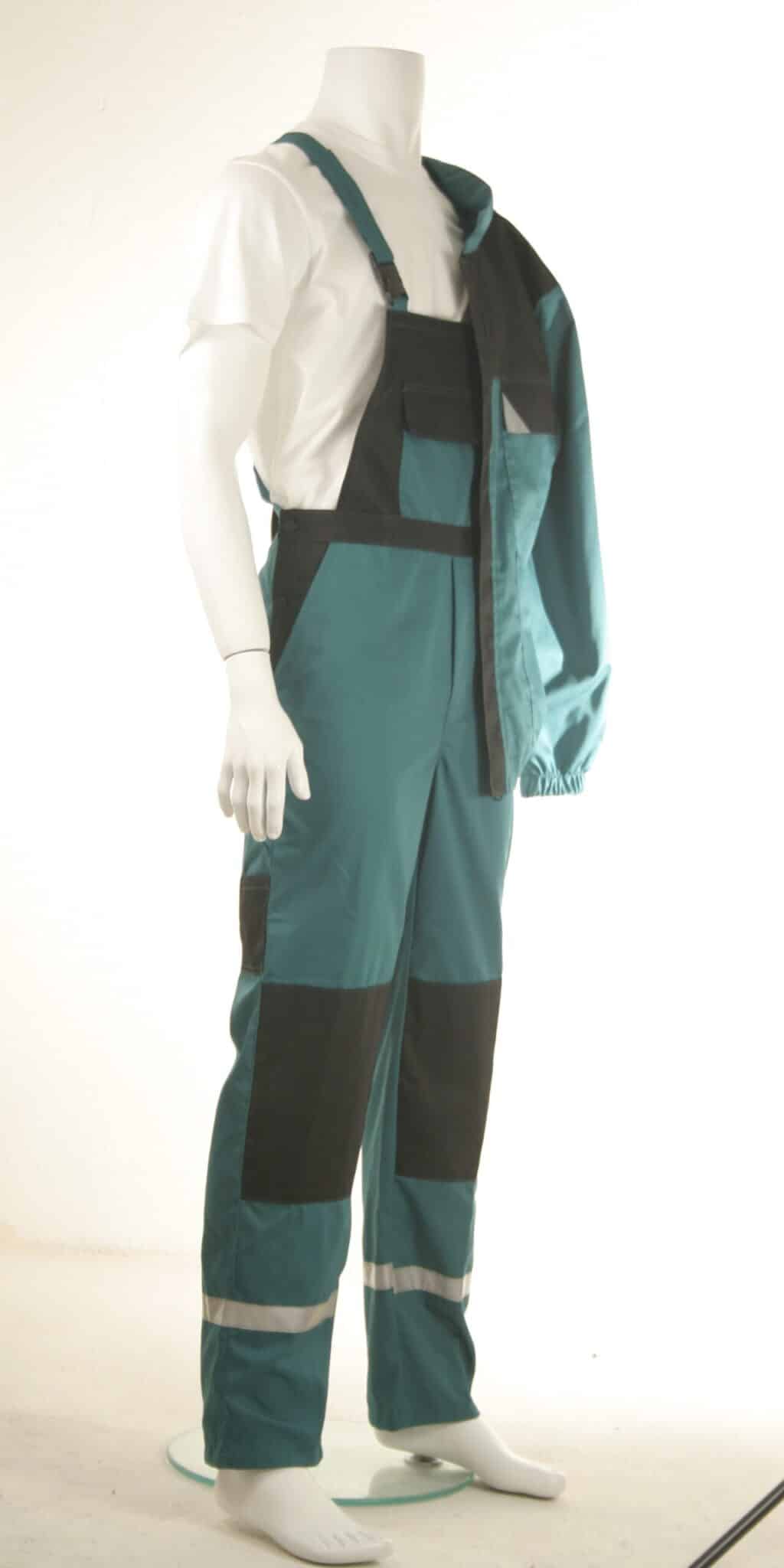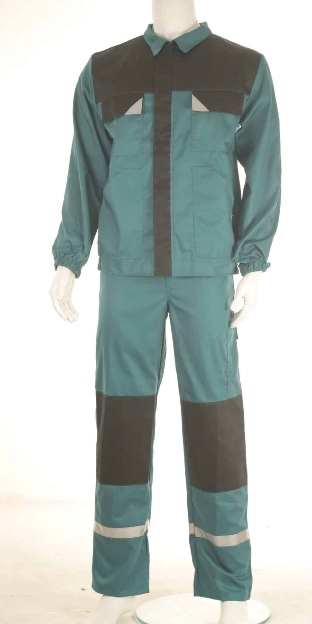 Комплектът е прозведен от 100% памучен плат с голяма здравина и износо-устойчивост. Якето е с комфортна свободна кройка, яка и ръкави с ластичен маншет. Има общо четири джоба: два горни на гърдите – един с капак и един с цип, също и два големи джоба отпред. Закопчаването е отпред с копчета, има прав колан и с частично ластично пристягане отстрани. Полугащеризонът е с удобна кройка, има регулируеми презрамки и ластик в кръста. Разполага с общо пет джоба – два предни, един на гърдите, един страничен и един заден. Костюм със светлоотразителни ленти осигурява видимост и безопасност на работника при условия на лошо осветление и в тъмните часове на деня. Костюмът е подходящо облекло за персонал в сферата на строителството, производството, и други различни видове дейности. Прочетете полезни съвети относно правилния избор на работен костюм със светлоотразителни ленти от тук.