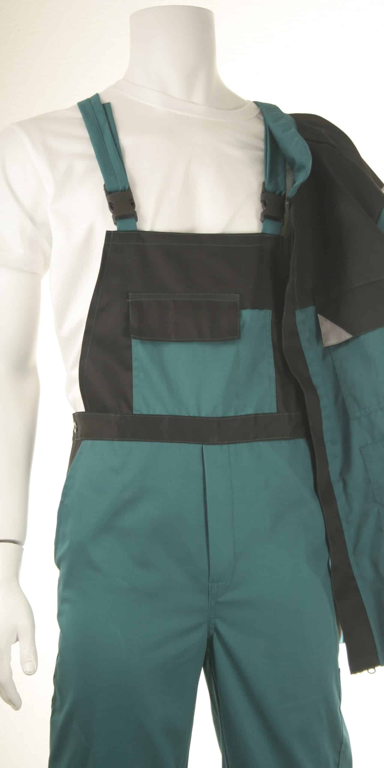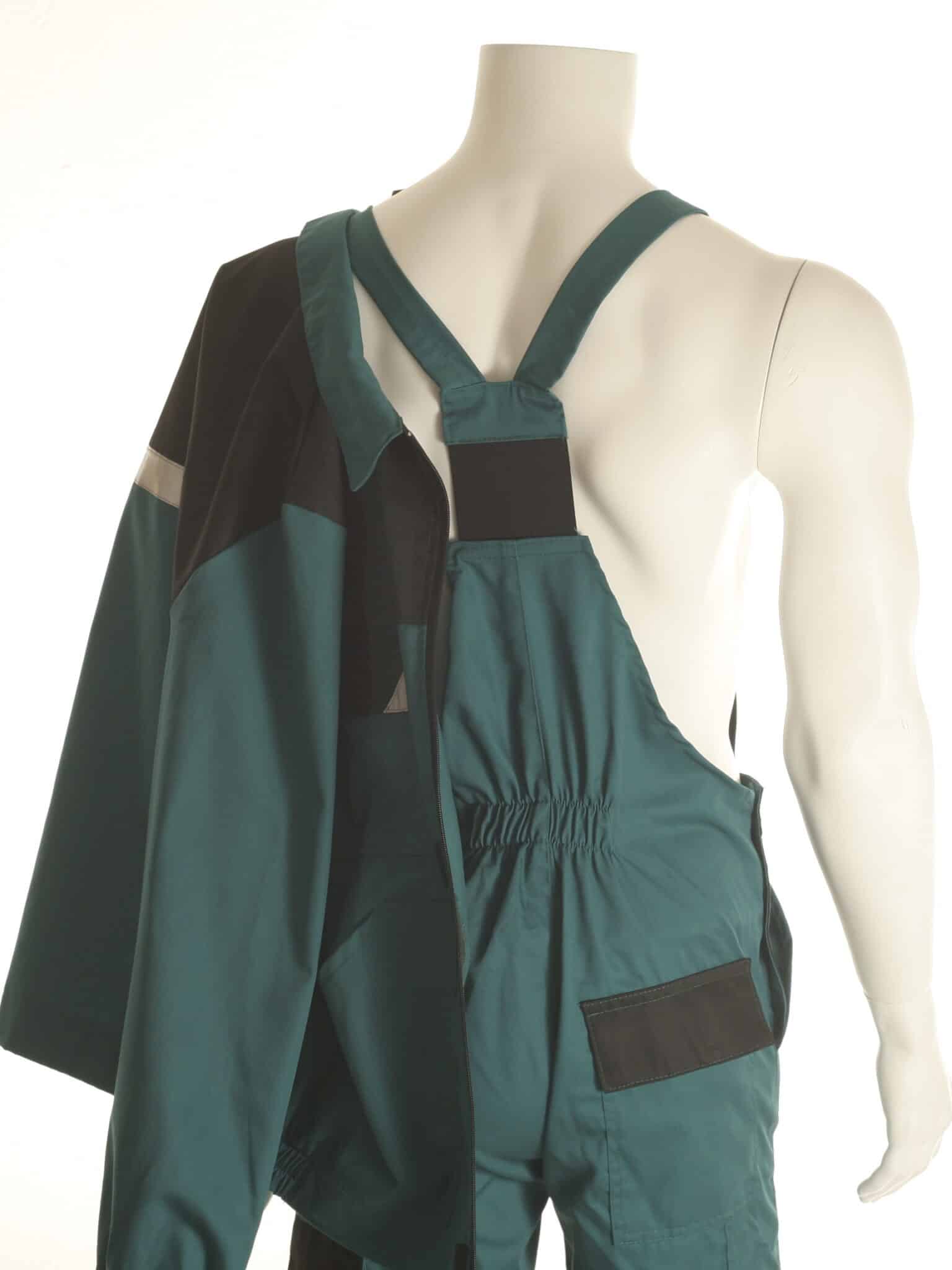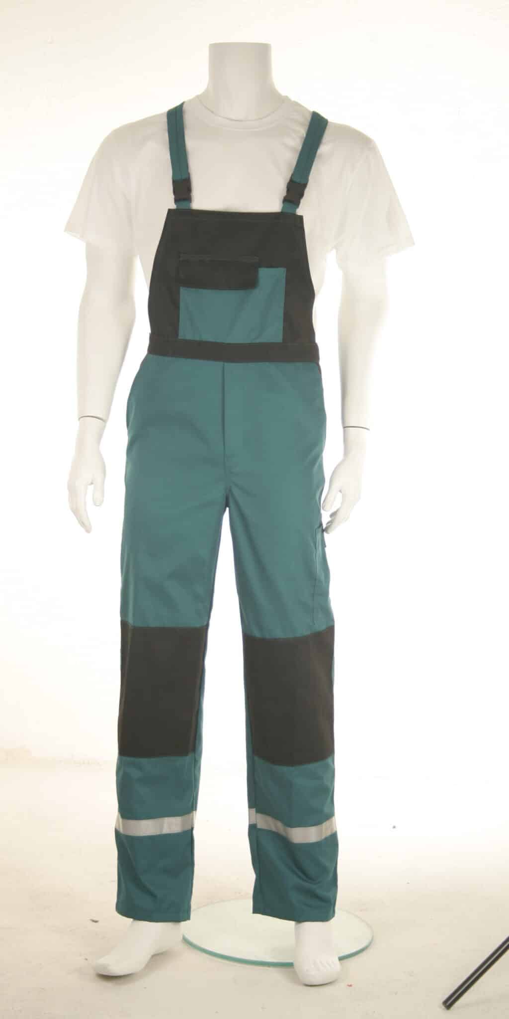 Комплектът е прозведен от 100% памучен плат с голяма здравина и износо-устойчивост. Якето е с комфортна свободна кройка, яка и ръкави с ластичен маншет. Има общо четири джоба: два горни на гърдите – един с капак и един с цип, също и два големи джоба отпред. Закопчаването е отпред с копчета, има прав колан и с частично ластично пристягане отстрани. Полугащеризонът е с удобна кройка, има регулируеми презрамки и ластик в кръста. Разполага с общо пет джоба – два предни, един на гърдите, един страничен и един заден. Костюм със светлоотразителни ленти осигурява видимост и безопасност на работника при условия на лошо осветление и в тъмните часове на деня. Костюмът е подходящо облекло за персонал в сферата на строителството, производството, и други различни видове дейности. Прочетете полезни съвети относно правилния избор на работен костюм със светлоотразителни ленти от тук.