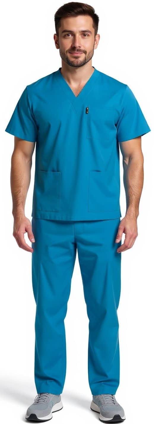 Костюм унисекс лукс – тюркоаз ще ви осигури лекота в работното ежедневие. Пасва еднакво добре ма мъже и на дами. Той е подходящият модел за вас, ако работите в сферата на медицината, ако сте рехабилиратор, фризьор, или масажист. Може да поръчате костюм унисекс лукс – тюркоаз онлайн с изгодна доставка по Еконт и Спиди. Потърсете консултантите ни на посочените в сайта телефони и имейл. За да допълните работната си униформа, поръчайте и хирургическа шапка от онлайн магазина ни.