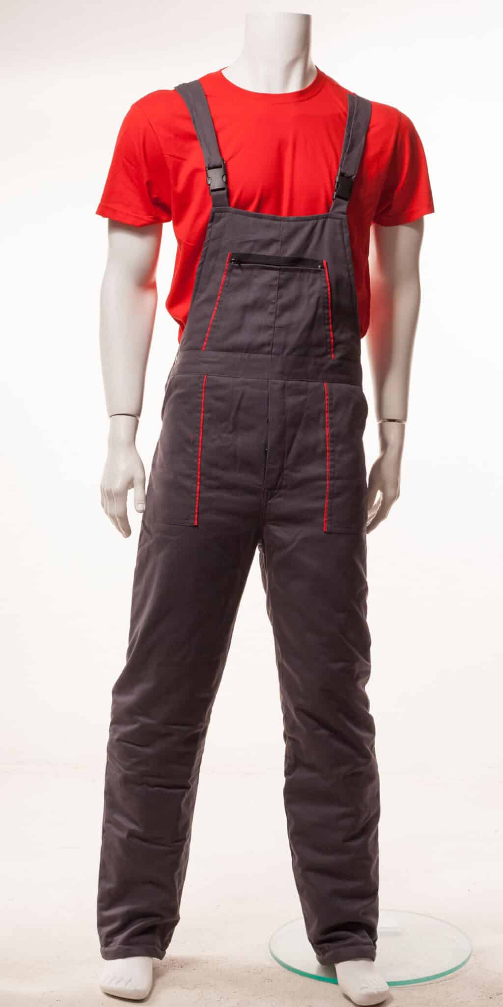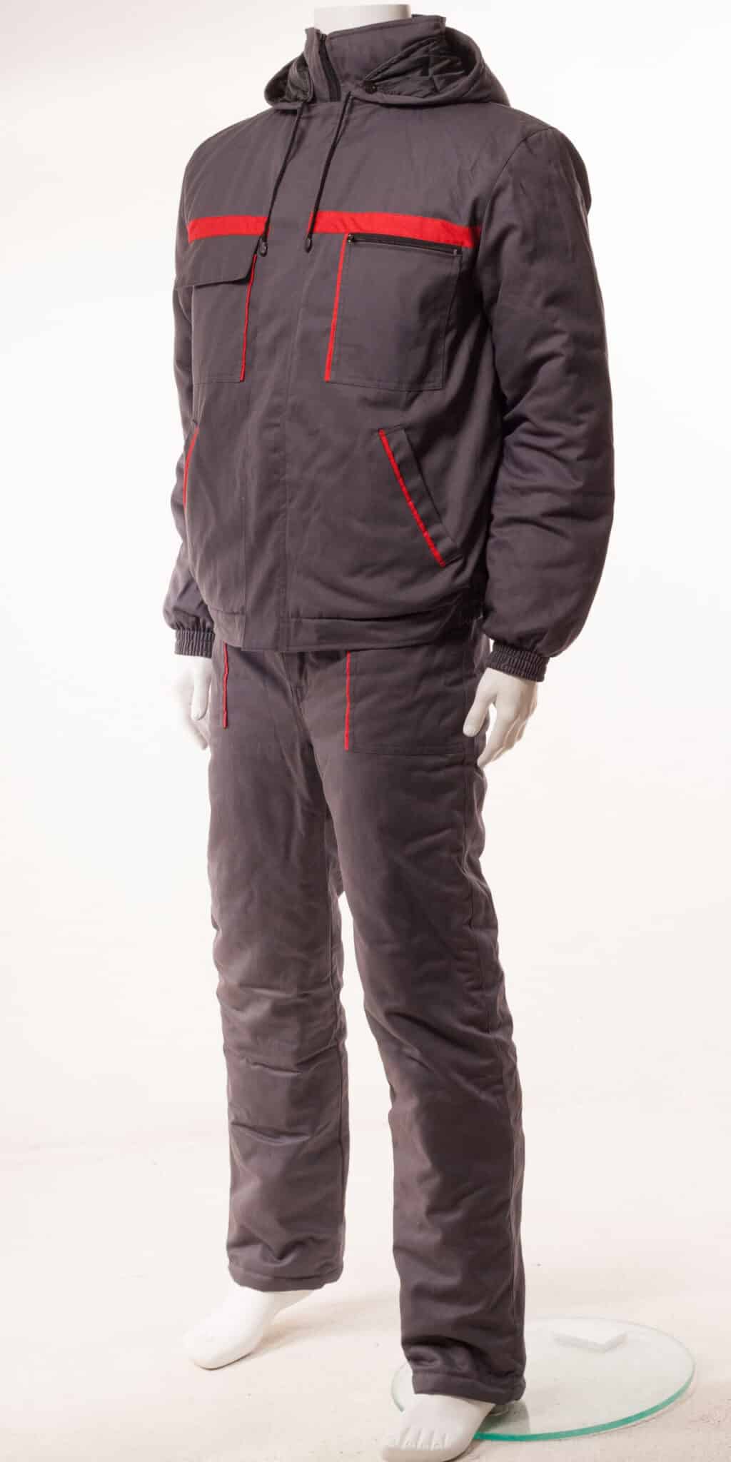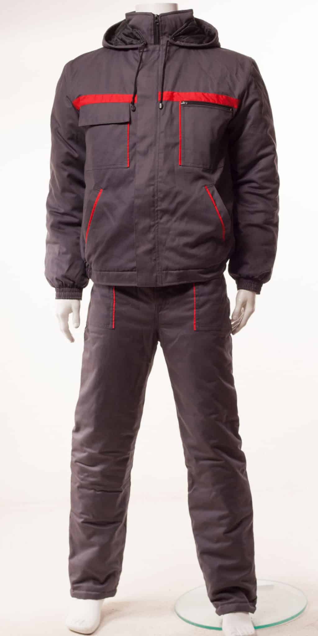 Костюм ватиран Тики се състои от яке и полугащеризон изработени от 100% памучен сив плат. Костюмът е подплатен с полиестерен хастар и с вшита полиестерна вата с тегло 150 г/м2. Полугащеризонът от ватиран костюм ТИКИ, е оборудван с регулируеми ластични презрамки. Има ластик на кръста за повече удобство. Снабден е с един голям джоб на гърдите, два предни джоба, един заден и един инструментален на крачола. Якето се закопчава с цип и има пластрон. Качулката може да се пристяга и да се сваля. Якето също така има два гръдни джоба с цип и капак, както и два предни джоба. Ръкавите са завършени с ластик за по-голяма безопасност при работа с машини и за по-добра студоустойчивост.