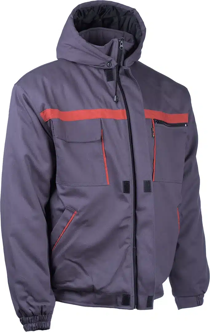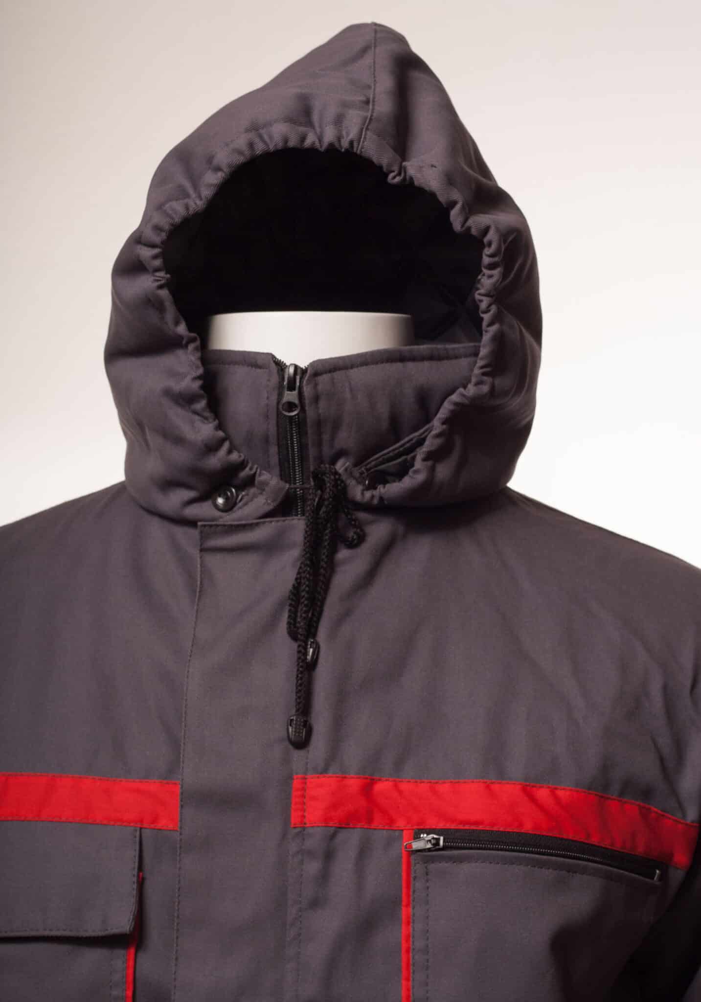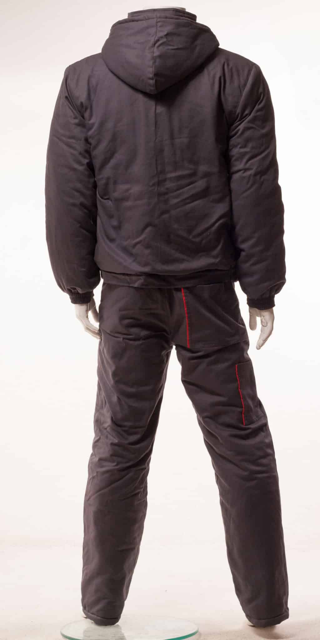 Костюм ватиран Тики се състои от яке и полугащеризон изработени от 100% памучен сив плат. Костюмът е подплатен с полиестерен хастар и с вшита полиестерна вата с тегло 150 г/м2. Полугащеризонът от ватиран костюм ТИКИ, е оборудван с регулируеми ластични презрамки. Има ластик на кръста за повече удобство. Снабден е с един голям джоб на гърдите, два предни джоба, един заден и един инструментален на крачола. Якето се закопчава с цип и има пластрон. Качулката може да се пристяга и да се сваля. Якето също така има два гръдни джоба с цип и капак, както и два предни джоба. Ръкавите са завършени с ластик за по-голяма безопасност при работа с машини и за по-добра студоустойчивост.
