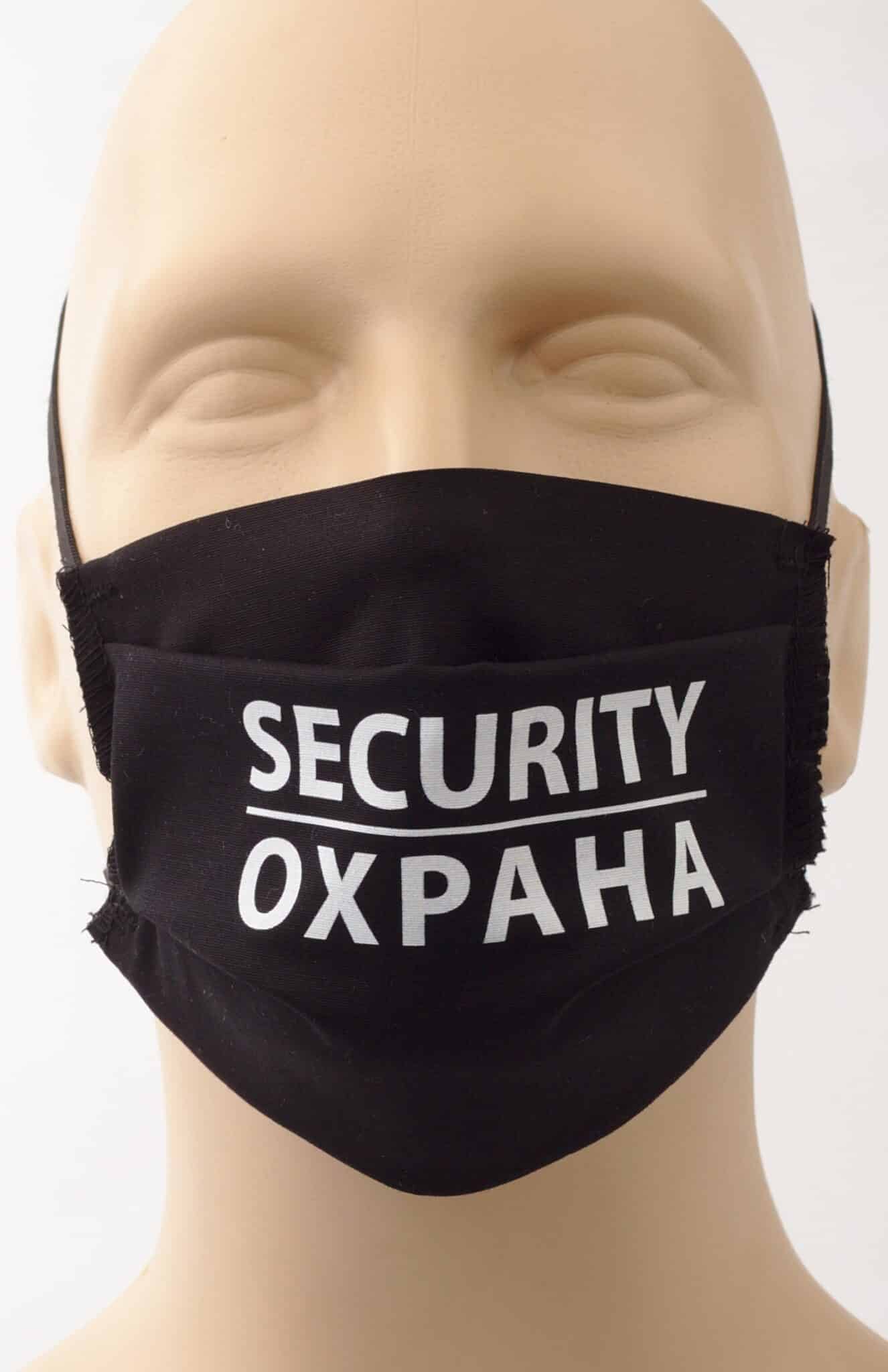 Кърпа за уста с дигитален печат Охрана на български и английски език. Кърпата е изработена от два пласта памук с добавени ластици за закрепване. Кърпа за уста – Охрана покрива плътно устата и носа и не затруднява дишането. Закрепването на кърпата може да бъде с два дълги ластика през тила, или два отделни ластика за ушите. Възможност за печат на името на охранителната фирма, или друг текст. Консултирайте се с нас за отстъпки за количества на тел.:0895 52 75 12, или изпратете запитване на: eshop@tiki-bg.com. Полезна информация за помощ при избора на облекла за охранители можете да намерите тук.