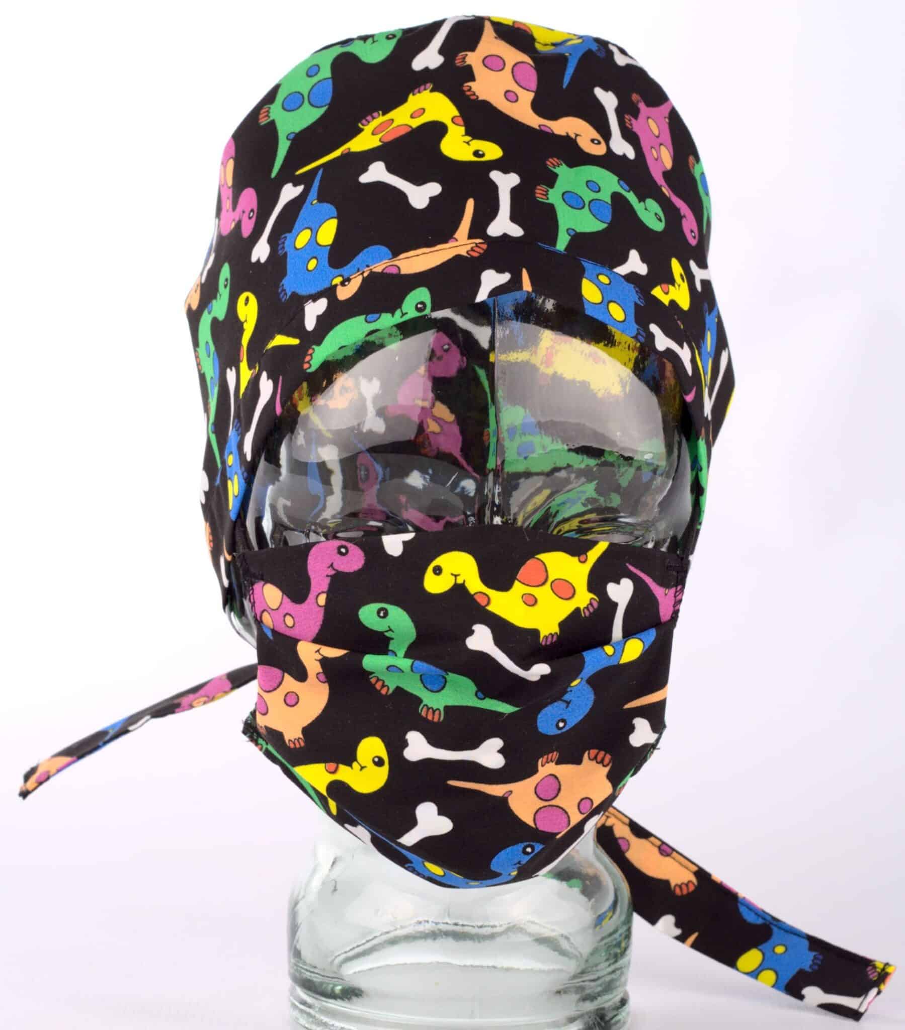 Текстилна кърпа за уста тип хармоника в многоцветна щампа на Динозаври. Кърпата е изработена от два пласта плат смес от 65% полиестер и 35% памук. Удобна е и не запарва при продължителна употреба. Изработена е с ластици за прикрепяне към ушите. Подходяща е за ежедневна употреба. Кърпа за уста с щампа Динозаври е идеално допълнение към медицинска туника унисекс с щампа Динозаври. Към комплекта можете да допълните и хирургична шапка с щампа Динозаври. Предлагаме този модел в универсален размер за възрастни и в детски размер. Кърпата за уста не гарантира защита от заболявания, както и от вредни вещества и химически изпарения.