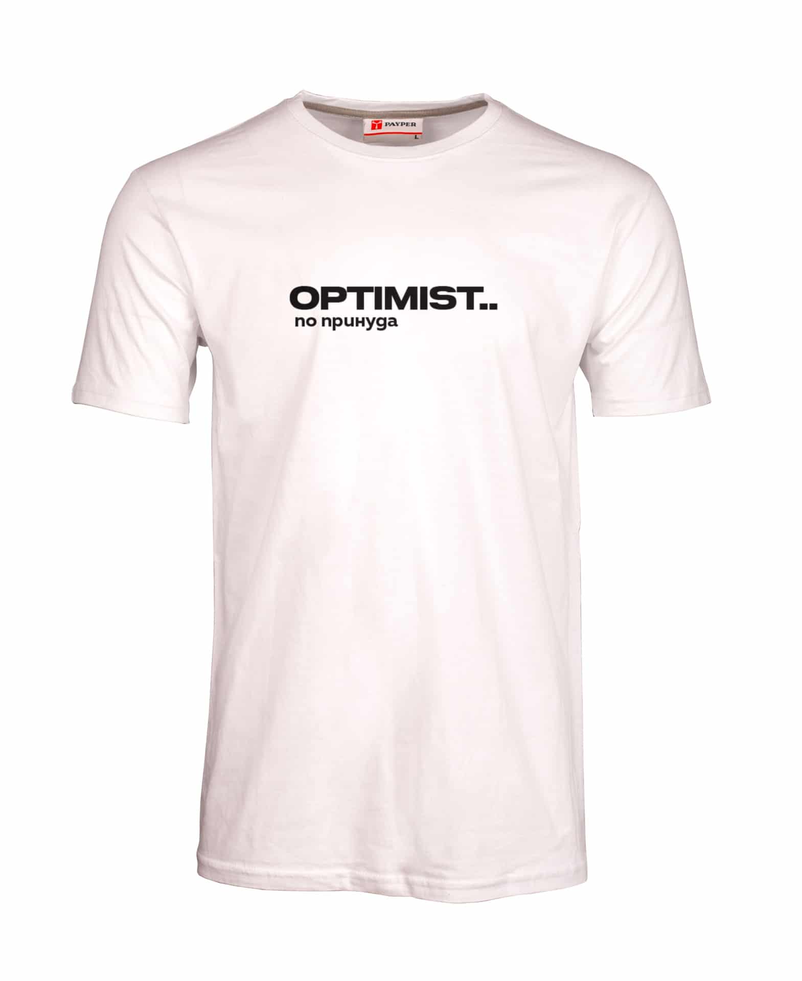 Купи онлайн с бърза доставка мъжка тениска Оптимист.. Optimist.. по принуда.