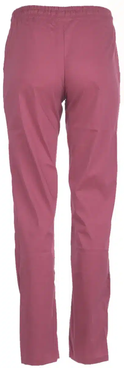 Дамски панталон втален в цвят малина, изработен от мека и приятна на допир материя. Моделът е снабден с ластик и връзки на кръста. Двата италиански джоба довършват елегантната визия на медицинския панталон. Подходящ е за медицински персонал, за дами, работещи в сферата на здравеопазването и детските заведения. За завършена визия, може да съчетаете панталон втален малина с много от нашите медицински туники.