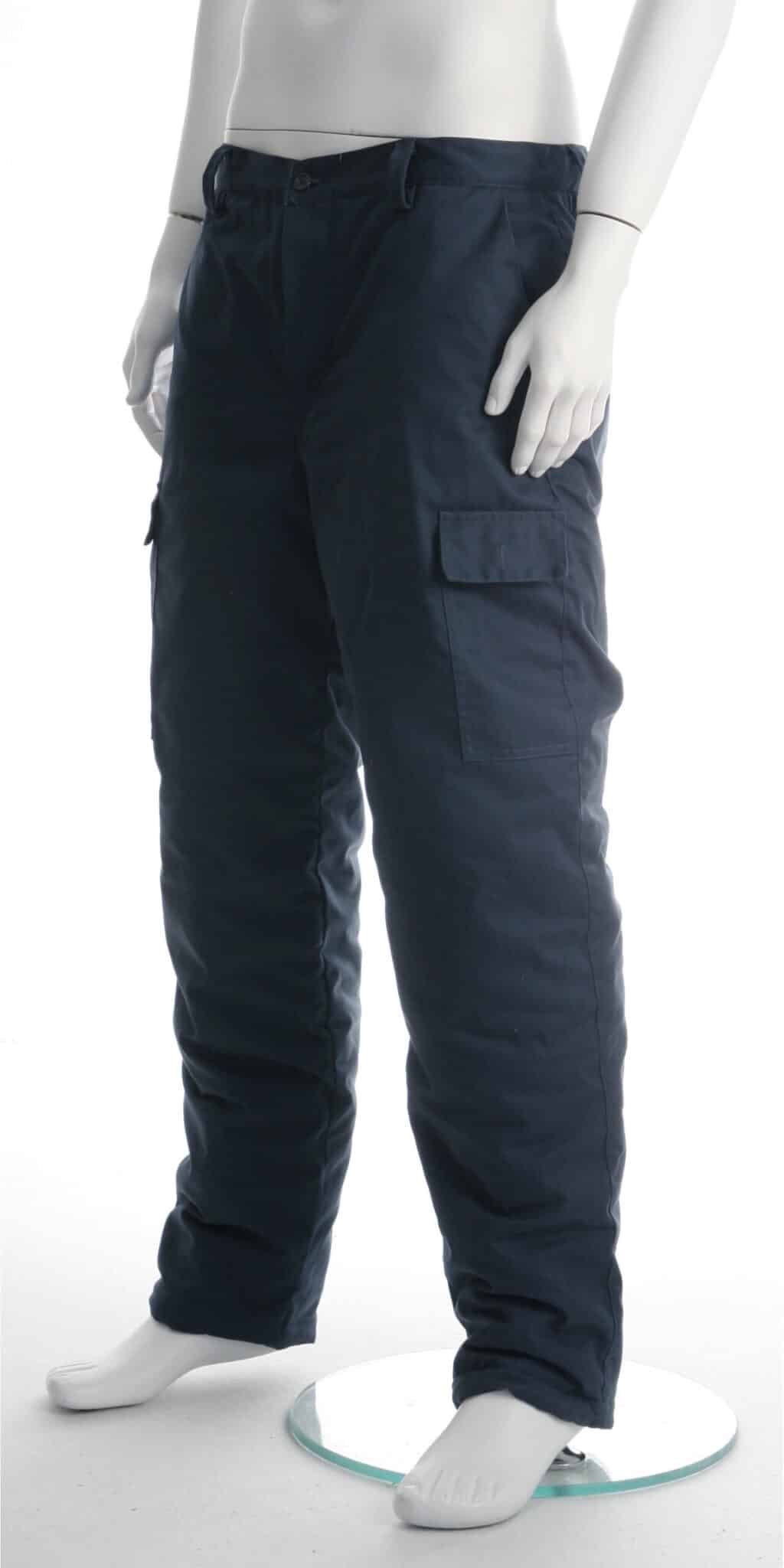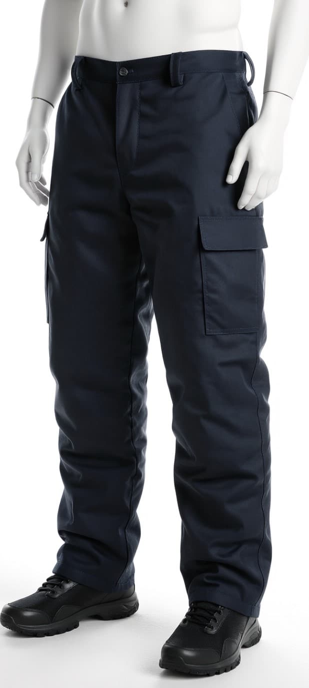 Панталон подходящ за охранители, ватиран, черен на цвят. Моделът се предлага от плат промазка, както и от плат смес памук/полиестер. Изработен е с полиестерен хастар и полиестерна вата с тегло 150 г/м2. Кройката е класическа, има два предни италиански джоба, един заден, и два странични с капаци. Закопчаването е с копчета и гайки за колан. Панталонът е подходящ за охранители, които работят на открито, както и за работници в студени помещения. Този модел панталон за охранители ватиран може да бъде изработен по заявка на клиента и от плат промазка. Поръчайте лесно онлайн, или посетете някой от физическите ни магазини.