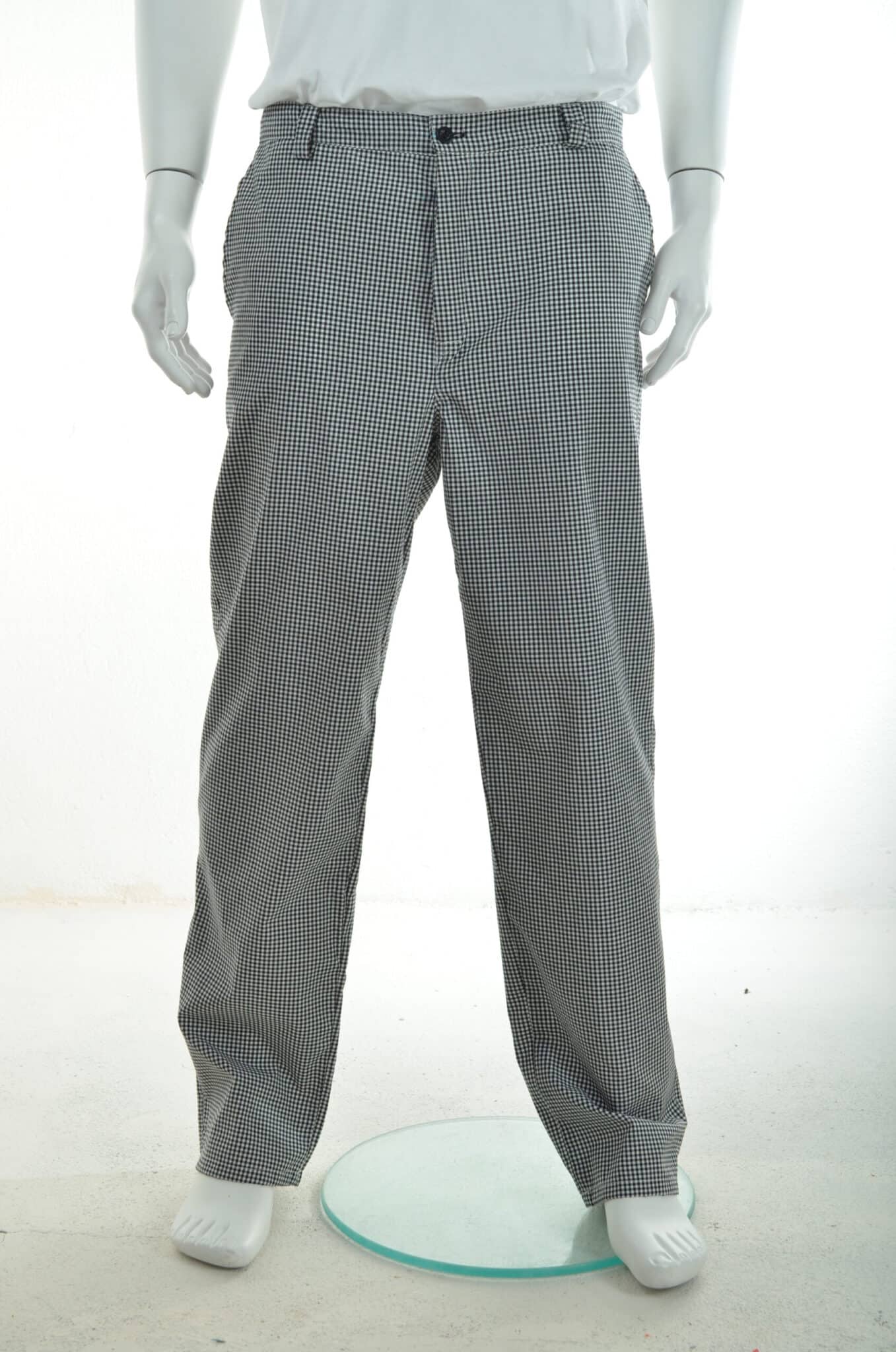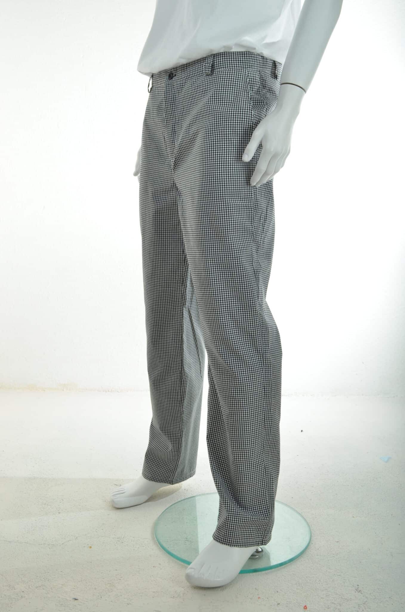 Панталон мъжки в шарка пепит. Изработен е с копчета и два предни джоба. Материята и кройката ви осигуряват лекота и удобство при ежедневна и продължителна работа. Съставът на плата е устойчив на многократно изпиране и гарантира лесно гладене. Моделът е подходящ за готвачи, медицински работници, санитарни работници, персонал в детски заведения, кухни и др.