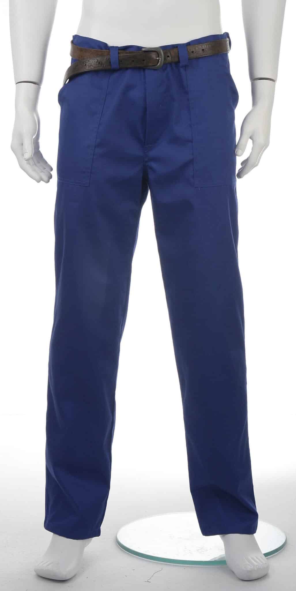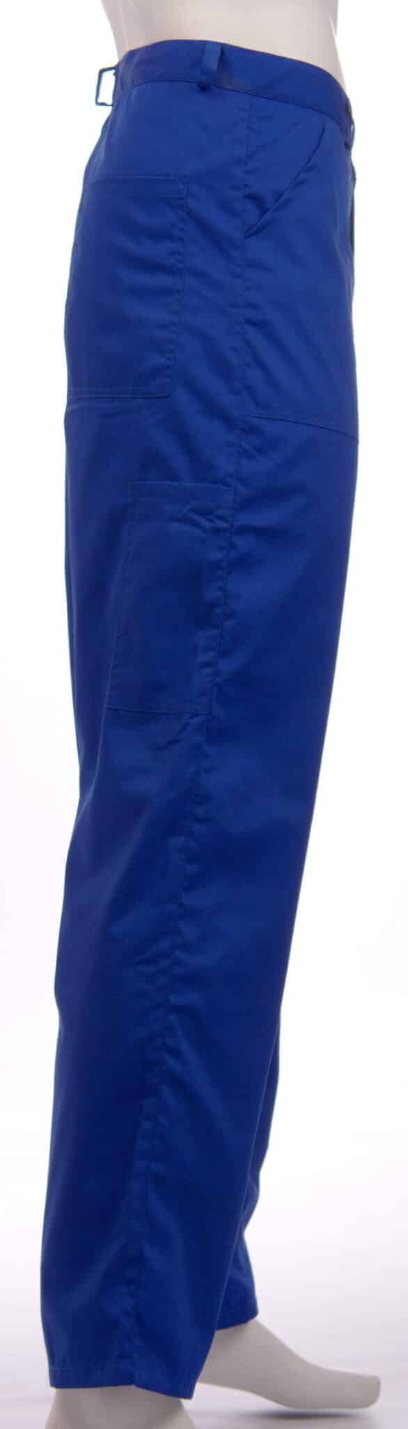 Работен мъжки панталон изработен от 100% памук с удобен прав силует. Панталонът предлага комфорт и лекота през лятото. Има класическа права кройка с три джоба – два предни италиански, един заден и един инструментален на крачола. Закопчаването е с копчета и гайки за колан. Нюансът на синия цвят може да варира. Моля, консултирайте се с нас.