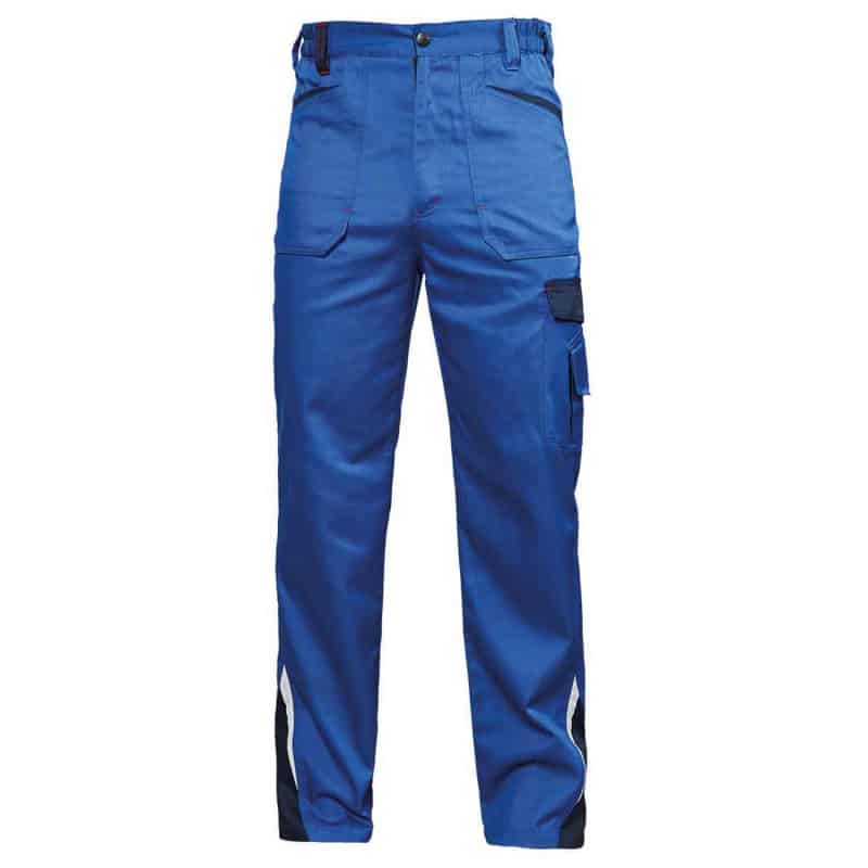 Работен панталон модел Призма летен в син цвят с тъмносини и със сигнални елементи. Изработен е от лека и много издръжлива материя Rip – stop. Тази материя не запарва, а осигурява комфорт при работа в закрити помещения и в горещините. Моделът е снабден с функционални джобове, закопчава се с цип и копче отпред и има гайки за колан. Сигналните елементи гарантират добра видимост от далечни разстояния. За завършена работна униформа комбинирайте панталон Призма летен син с яке Призма лятно синьо .