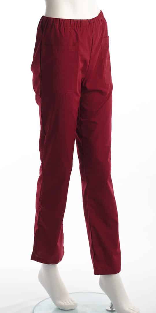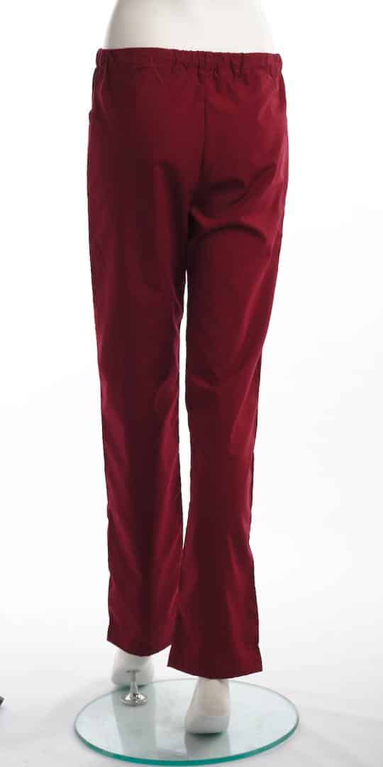 Панталон от типа унисекс в цвят бордо. Моделът е с кройка подходяща за мъже и за жени, има ластик в кръста. Панталон унисекс бордо има два предни джоба и предлага лекота и удобство при ежедневна и продължителна работа. Съставът на плата позволява многократно изпиране и лесно гладене. Подходящ е за медицински работници, санитарни работници, персонал в детски заведения, кухни и др.