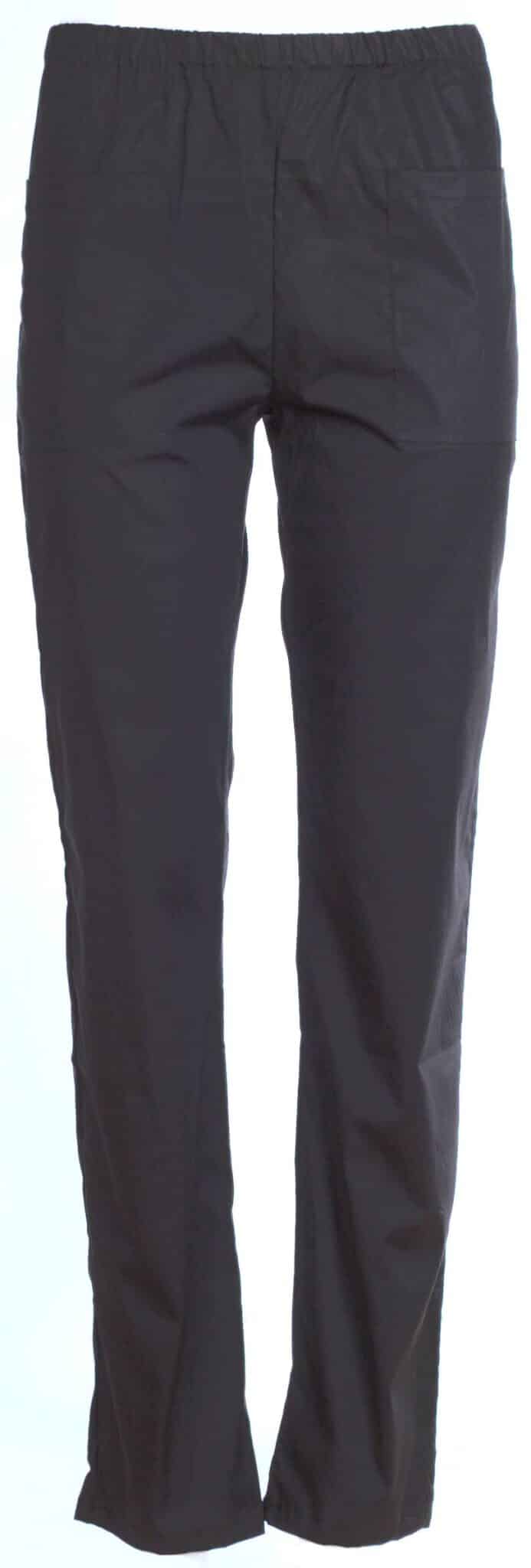 Работен панталон унисекс изработен от памучен плат лукс в черен цвят. Моделът е еднакво подходящ за мъже и за жени. Има ластик в кръста и два предни джоба. Материята е с високо съдържание на памук и е много приятна на допир. Панталон унисекс лукс в черен цвят е еднакво подходящ за работна униформа както за медицински персонал, така и за работници в кухня. Чудесен е за работа също за фризьори, козметици, рехабилклитатори, камериерки и други.