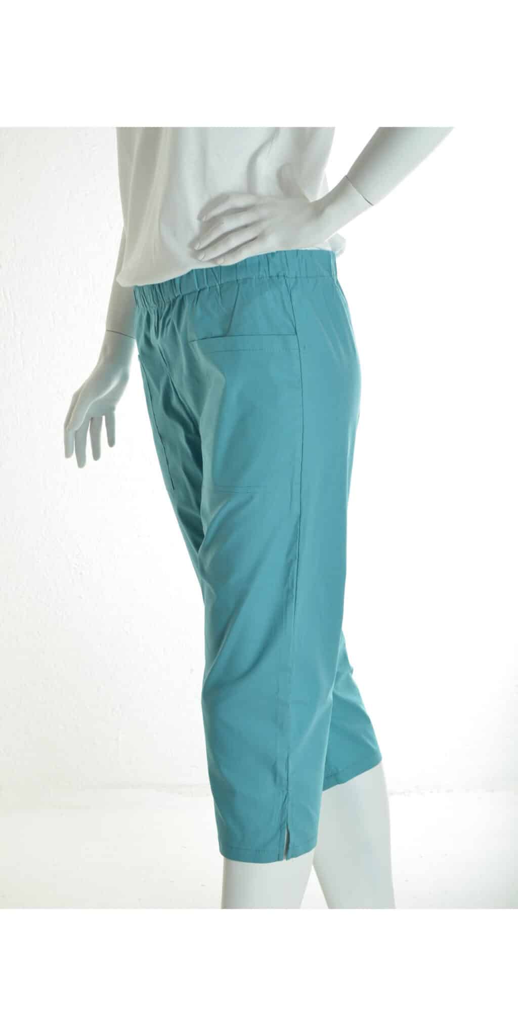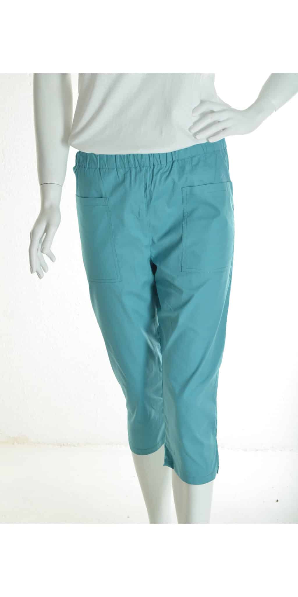 Панталон 3/4 в цвят резеда. Изработен от плат смес от памук с полиестер, с подходяща кройка за мъже и за жени. Широчината в кръска се регулира ластик. Панталон 3/4 резеда има два предни джоба и предлага лекота и удобство при ежедневна и продължителна работа. Подходящ е при работа свързана с различни видове движения при дейности по хигиена и почистване, за персонал в детски заведения и др.