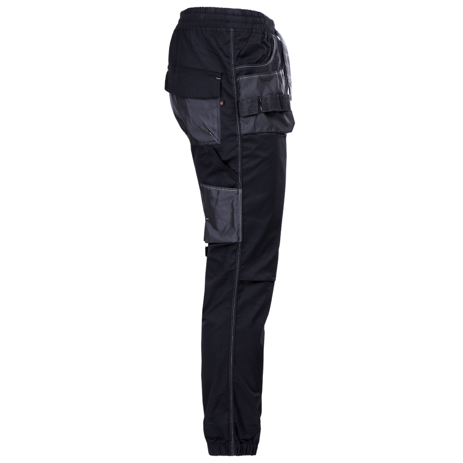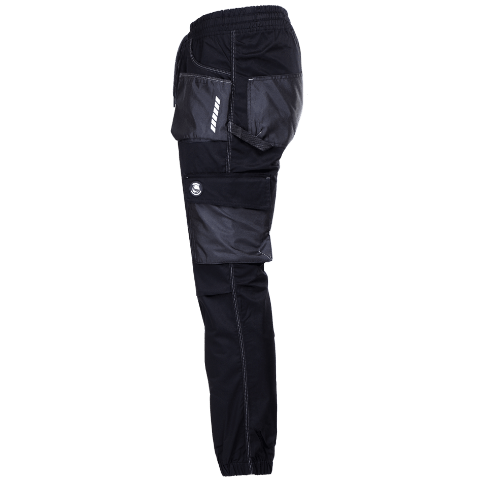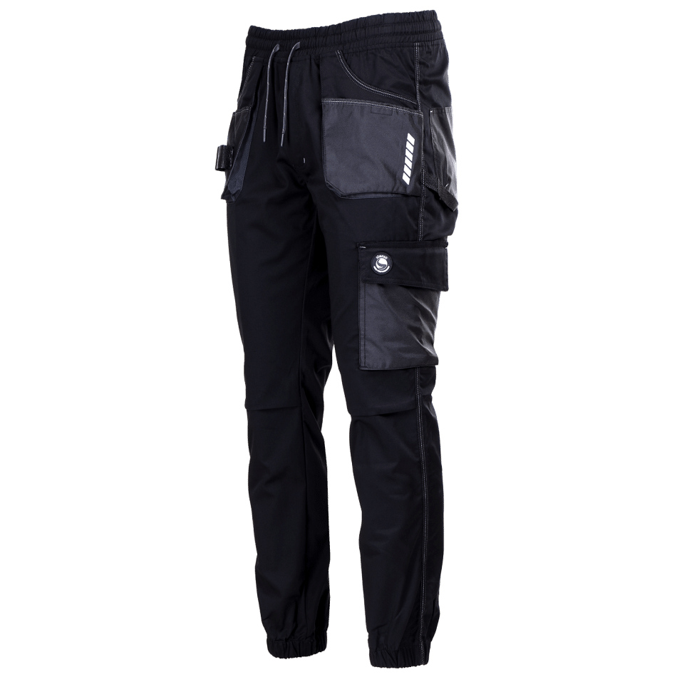 Черният спортен панталон Revolt е идеалният избор за тези, които искат да съчетаят стил и комфорт в работното си облекло. Със своята спортна визия и вталена кройка, този панталон ще ви предостави не само професионален вид, но и максимално удобство през целия работен ден.