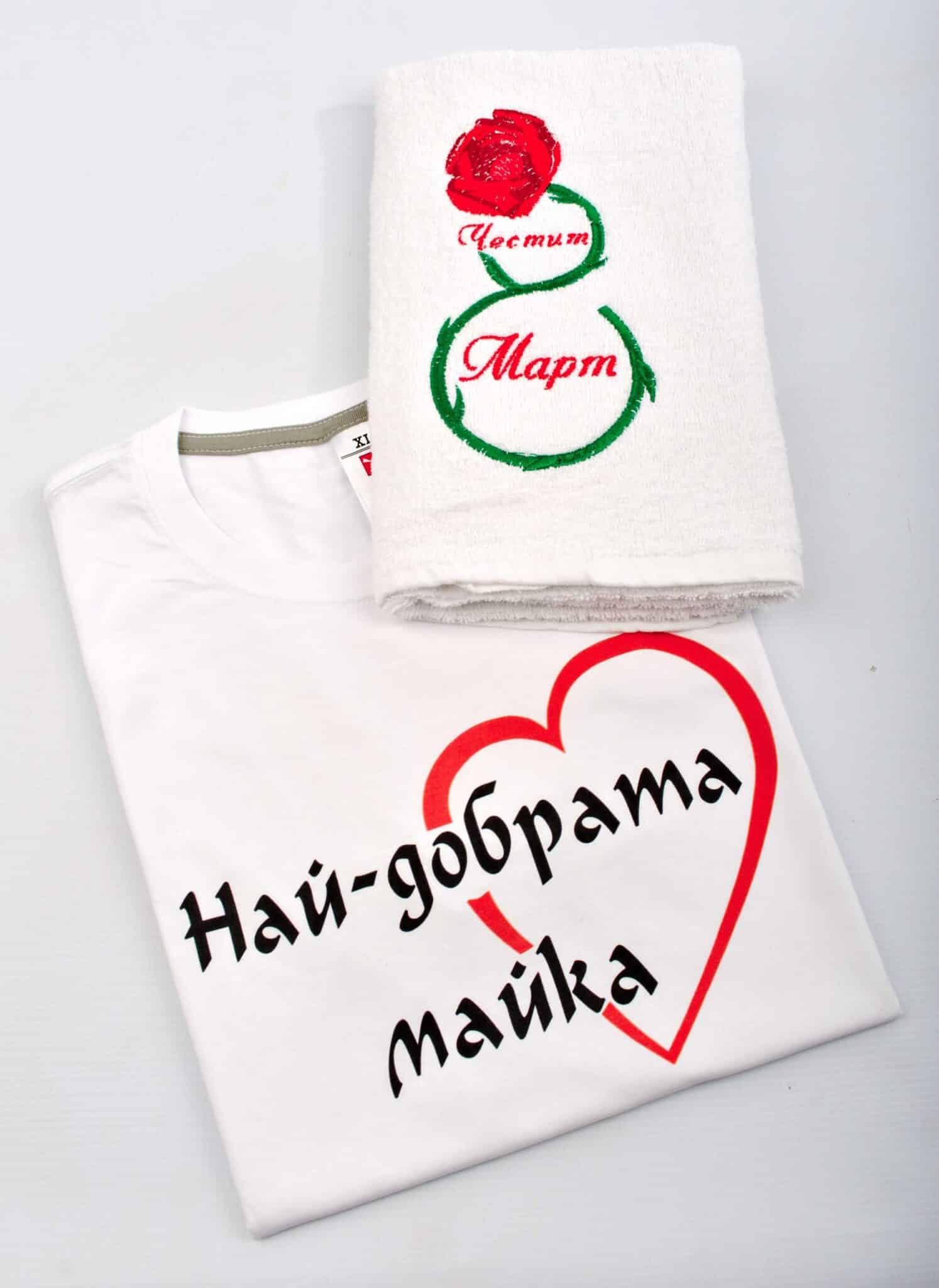 Подаръчен комплект – 8-ми март е чудесен и за госпожи в детски ясли и градини с бродерия Най-добрата госпожа.