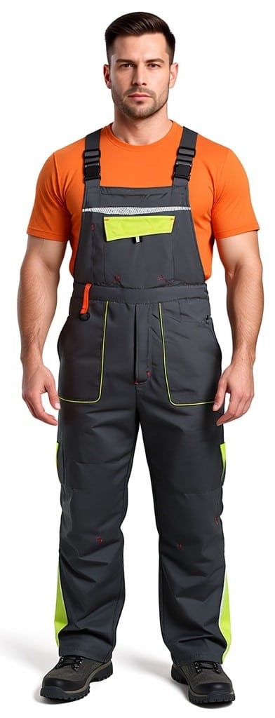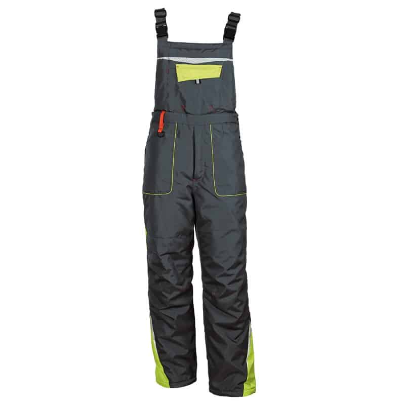 Работен полугащеризон ватиран, модел Призма. Изработен е от водозащитна материя в сив цвят със светлоотразителни и елетриково зелени елементи. Моделът има регулируеми презрамки и общо пет джоба. Крачолите са прави, като имат опция за стесняване в долния край чрез велкро. Полугащеризонът е отлично предложение за работно облекло през студените месеци от годината. Моделът се комбинира идеално с ватирано яке модел Призма в същата цветова комбинация. Освен ватиран, полугащеризон Призма може да поръчате и във вариант от тънък плат. Предлагаме полугащеризон Призма в черен, сив и в светлосив цвят с електриково зелени елементи. Може да поръчате и зимно яке Призма за завършен комплект.