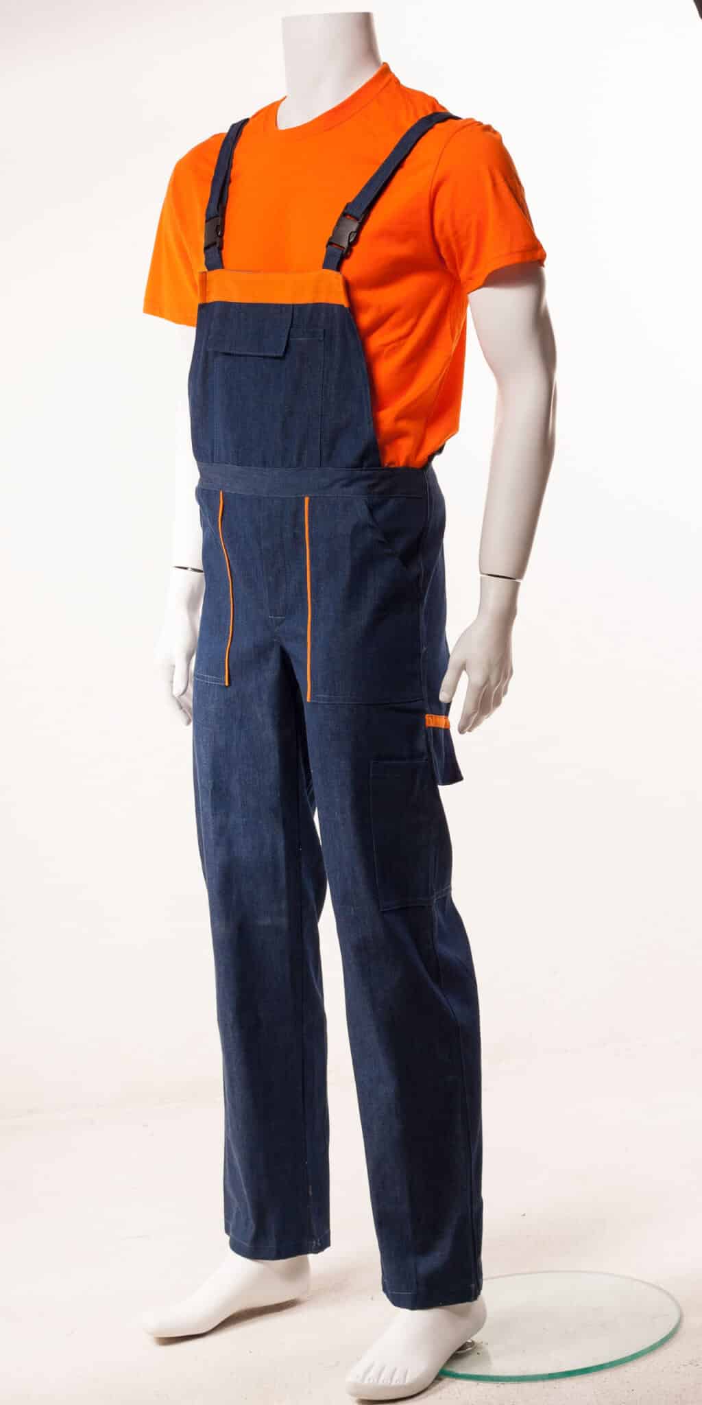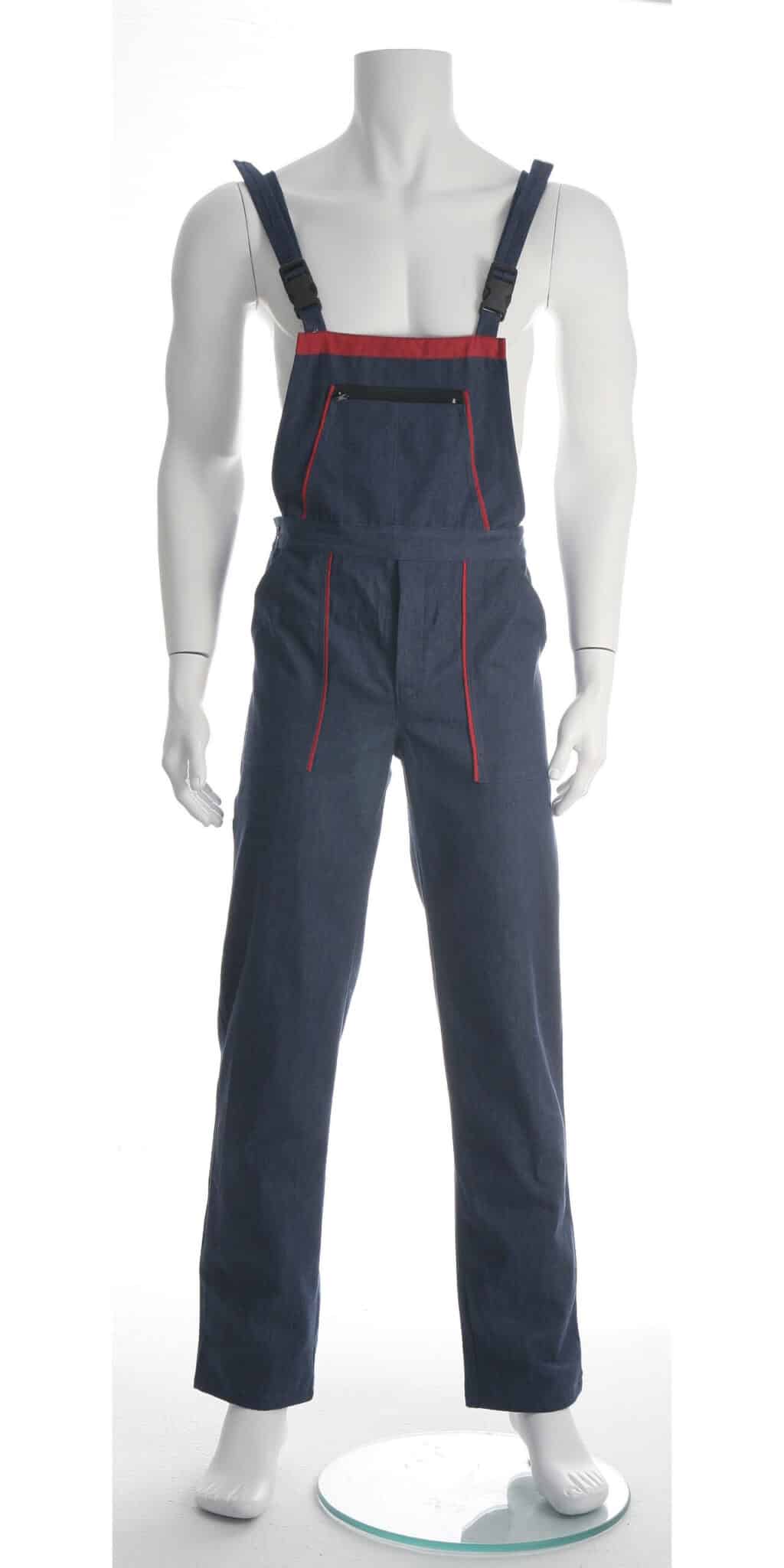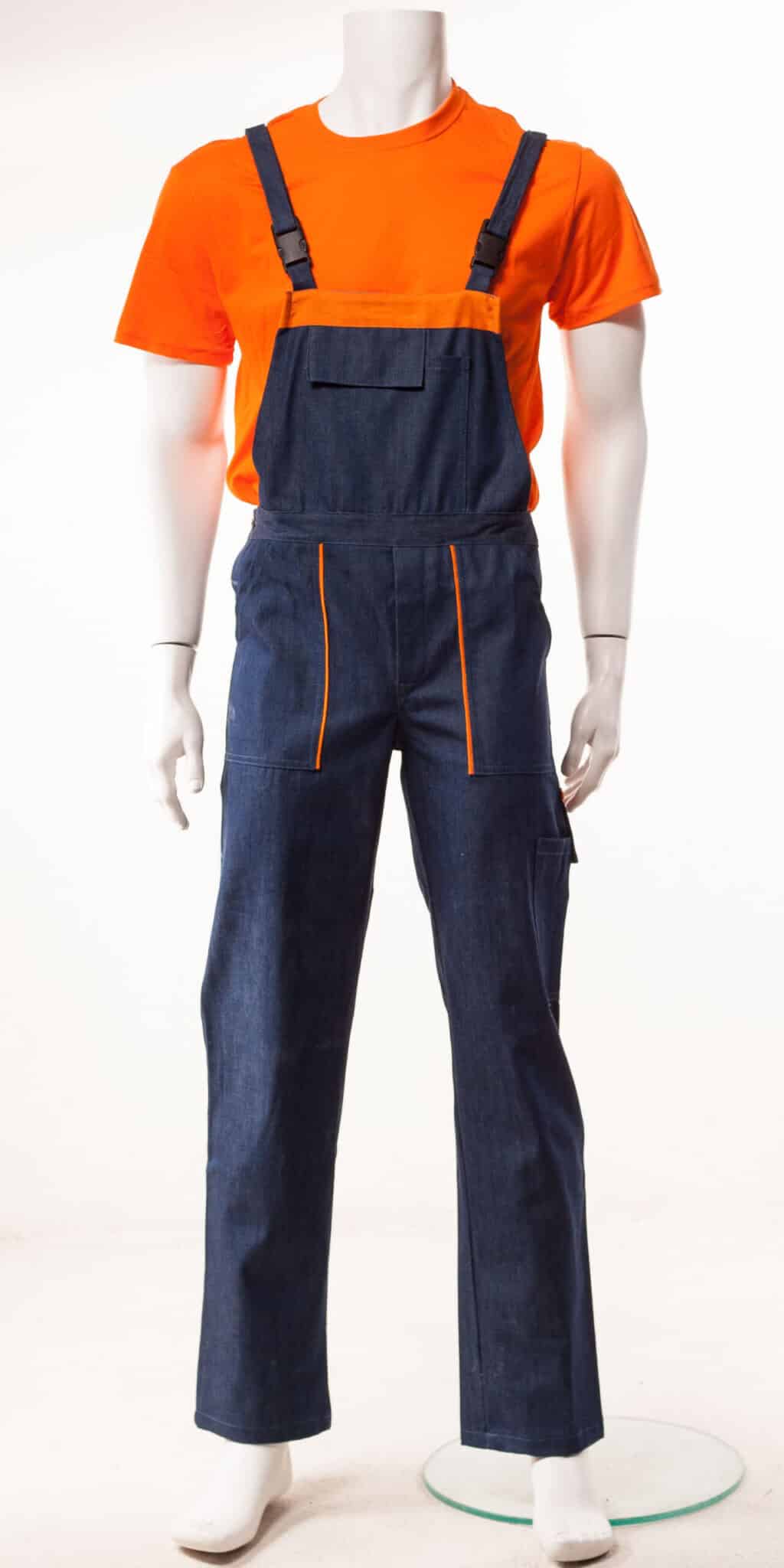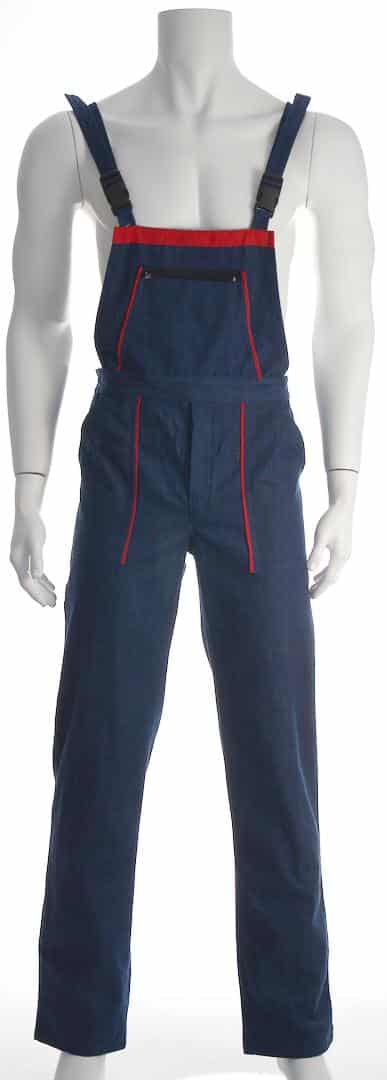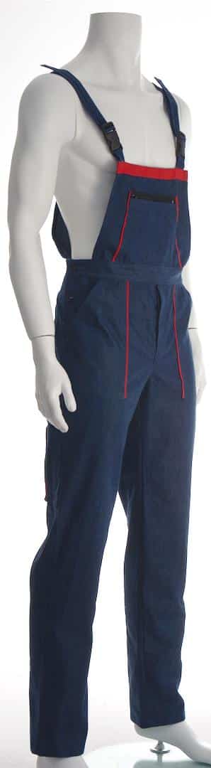 Работният полугащеризон е произведен от 100% памучен дънков плат по удобна и ергономична кройка. Моделът е снабден с регулируеми презрамки. Има един голям джоб на гърдите с цип, два предни джоба, един инструментален на крачолите и един заден джоб. Полугащеризон дънков може да бъде изработен в два варианта: с червени, или оранжеви елементи. Артикулът е подходящ като работно облекло за работници в строителни фирми, автомонтьори, хамали и много други. Цветът на дънковия плат може да варира, както и цветът на гарнитурата. Консултирайте се с нас за наличностите.
