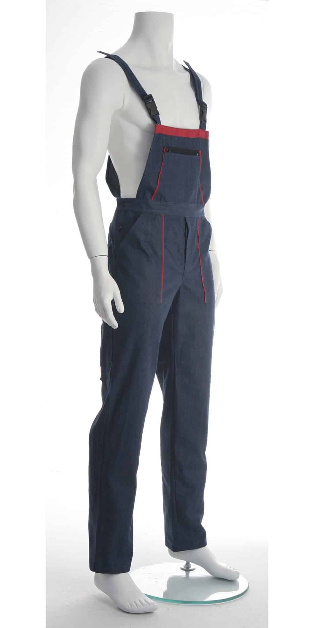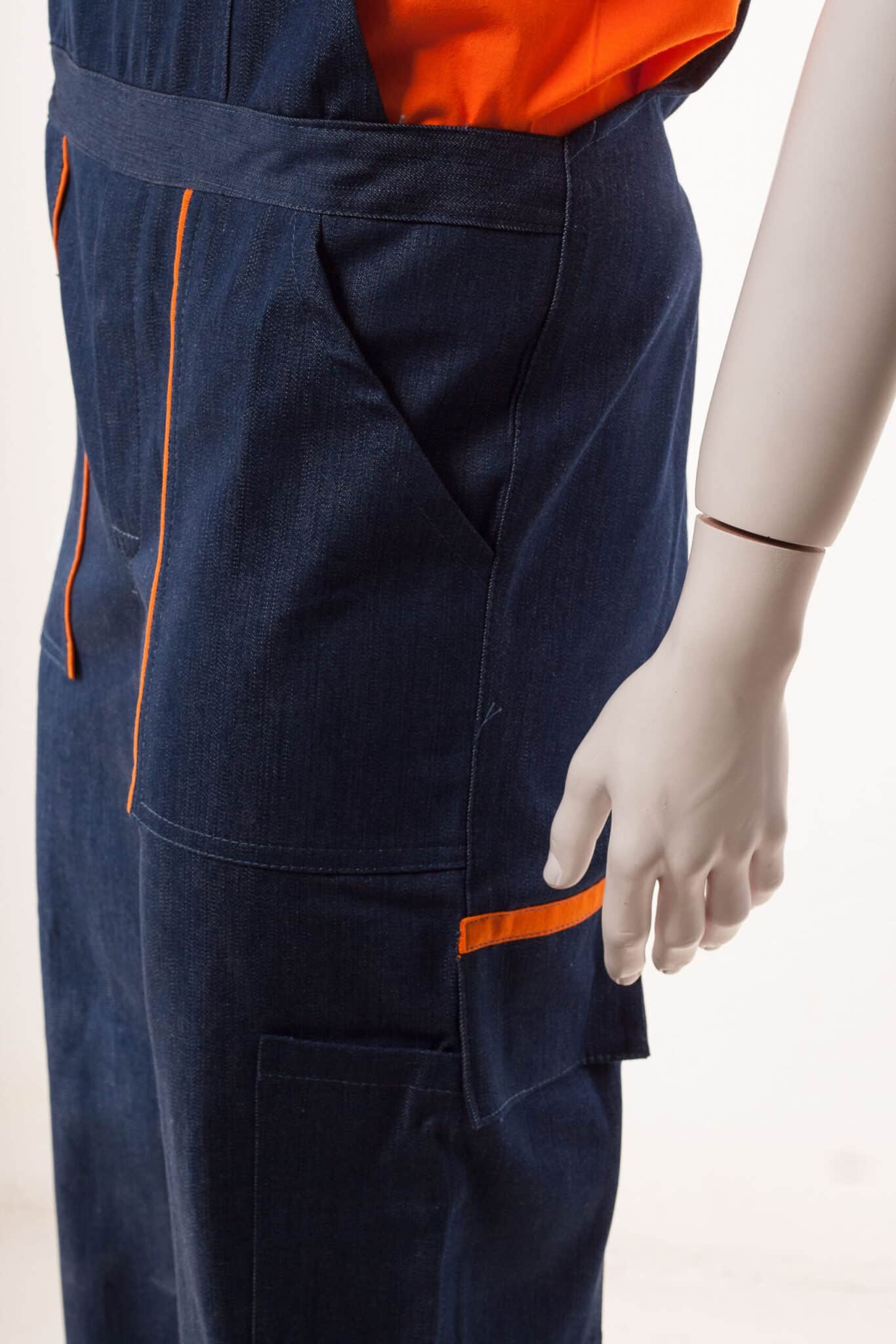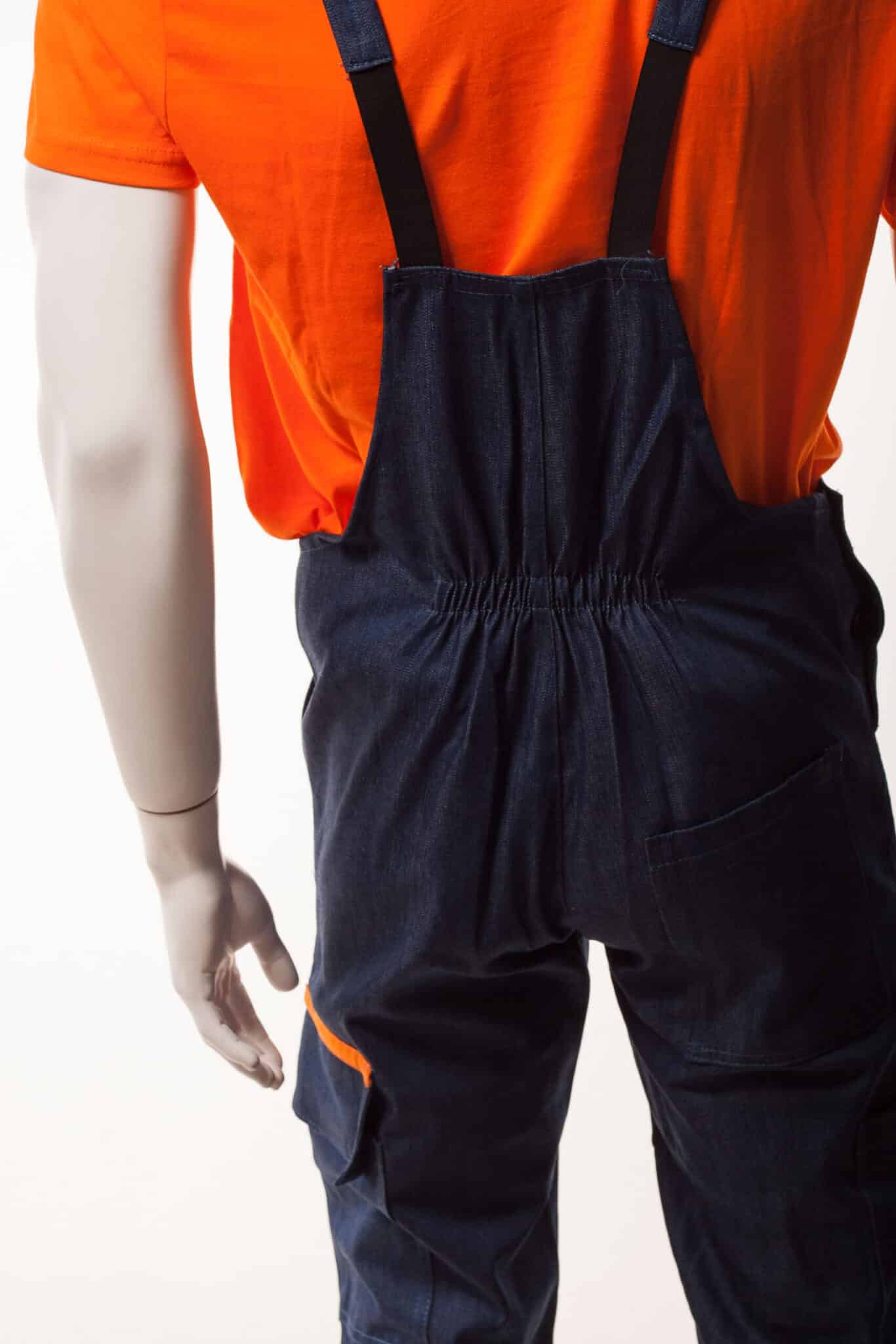 Работният полугащеризон е произведен от 100% памучен дънков плат по удобна и ергономична кройка. Моделът е снабден с регулируеми презрамки. Има един голям джоб на гърдите с цип, два предни джоба, един инструментален на крачолите и един заден джоб. Полугащеризон дънков може да бъде изработен в два варианта: с червени, или оранжеви елементи. Артикулът е подходящ като работно облекло за работници в строителни фирми, автомонтьори, хамали и много други. Цветът на дънковия плат може да варира, както и цветът на гарнитурата. Консултирайте се с нас за наличностите.