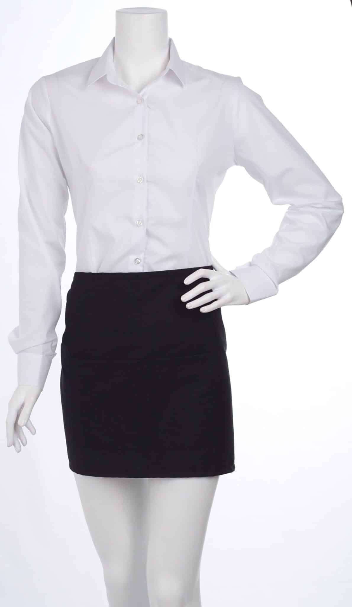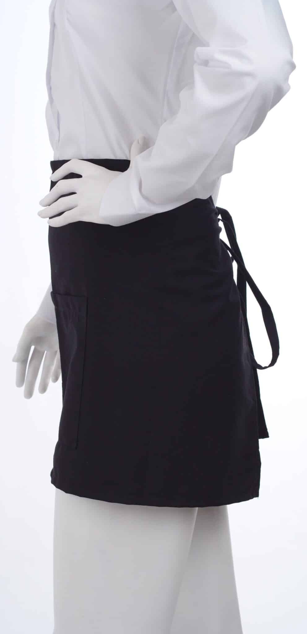 Престилка за сервитьори тип предница, къса. Изработена е от плат смес от памук с полиестер в черен цвят. Материята е лека и много лесна за поддръжка. Изсъхва бързо след пране и се глади много лесно. Престилката има два съединени еднакво големи джоба отпред. По предпочитание на клиента престилка предница къса може да бъде изработена и в друг цвят. Консултирайте се с нас за подробностите.
