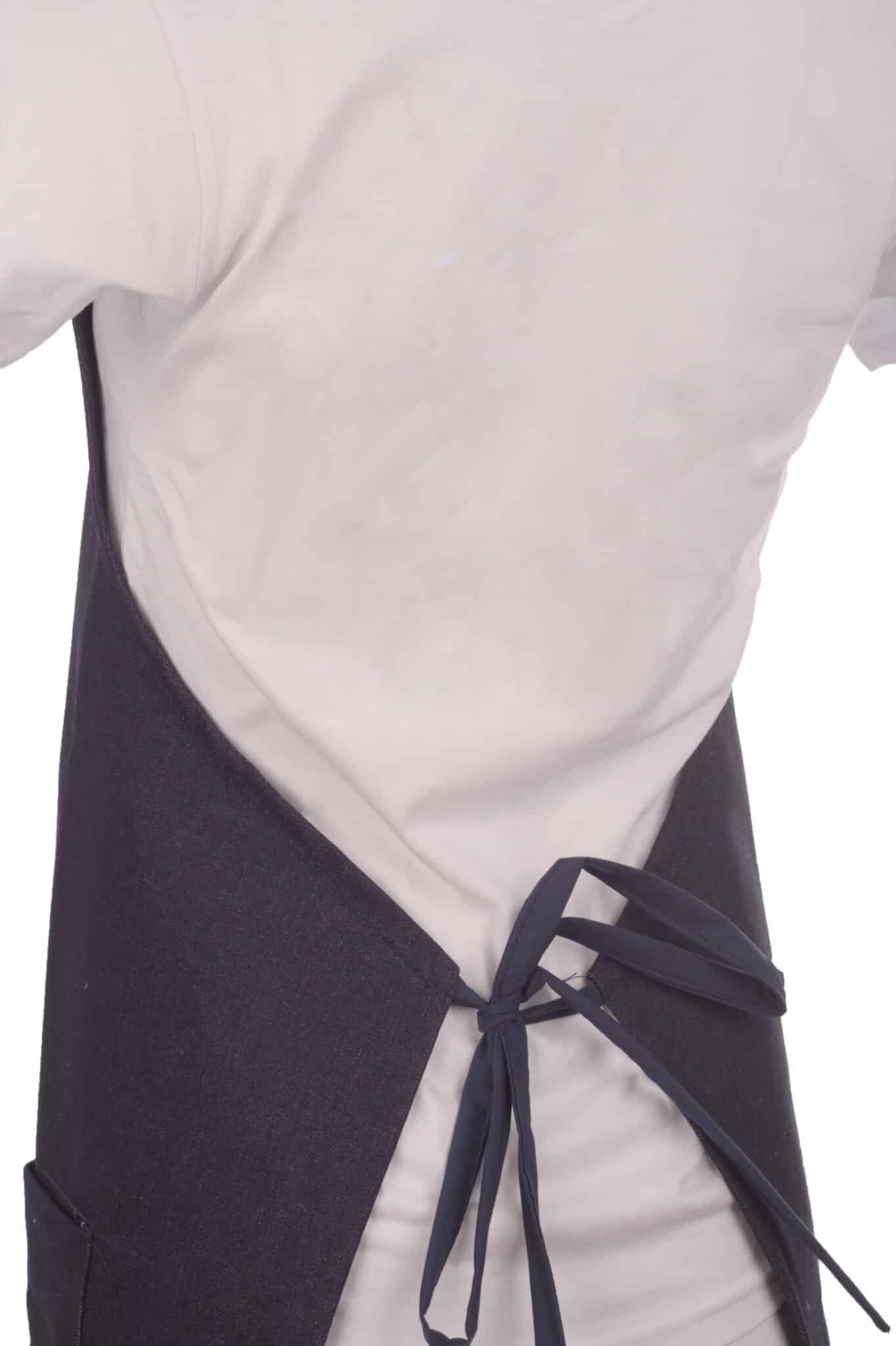 Престилка през врат дънкова с универсален размер. Изработена е от плътен тъмносин деним. Престилката има връзки на кръста за лесно регулиране на широчината според силуета. Престилка през врат дънкова е унисекс модел, който е подходящ за двата пола. Идеално допълнение към сервитьорска или готварска униформа. Вижте нашите предложения за работни униформи за готвачи и сервитьори.