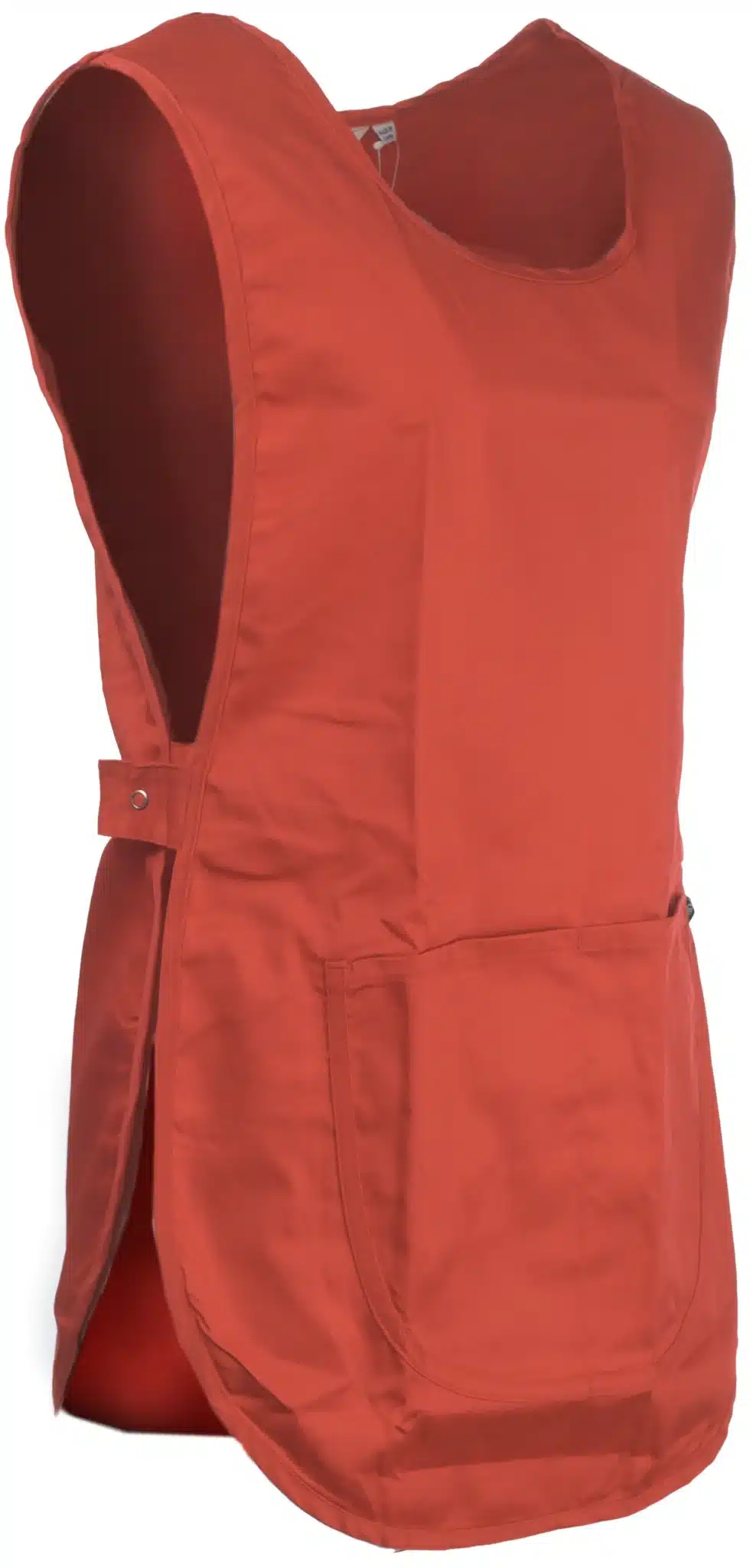 Червената готварска престилка има стилна и модерна визия. За повече удобство и комфорт, има възможност за регулиране на ширината чрез три степени от тик-так копчета. Може да я комбинирате с готварски панталон, работна тениска, както и подходяща готварска шапка.