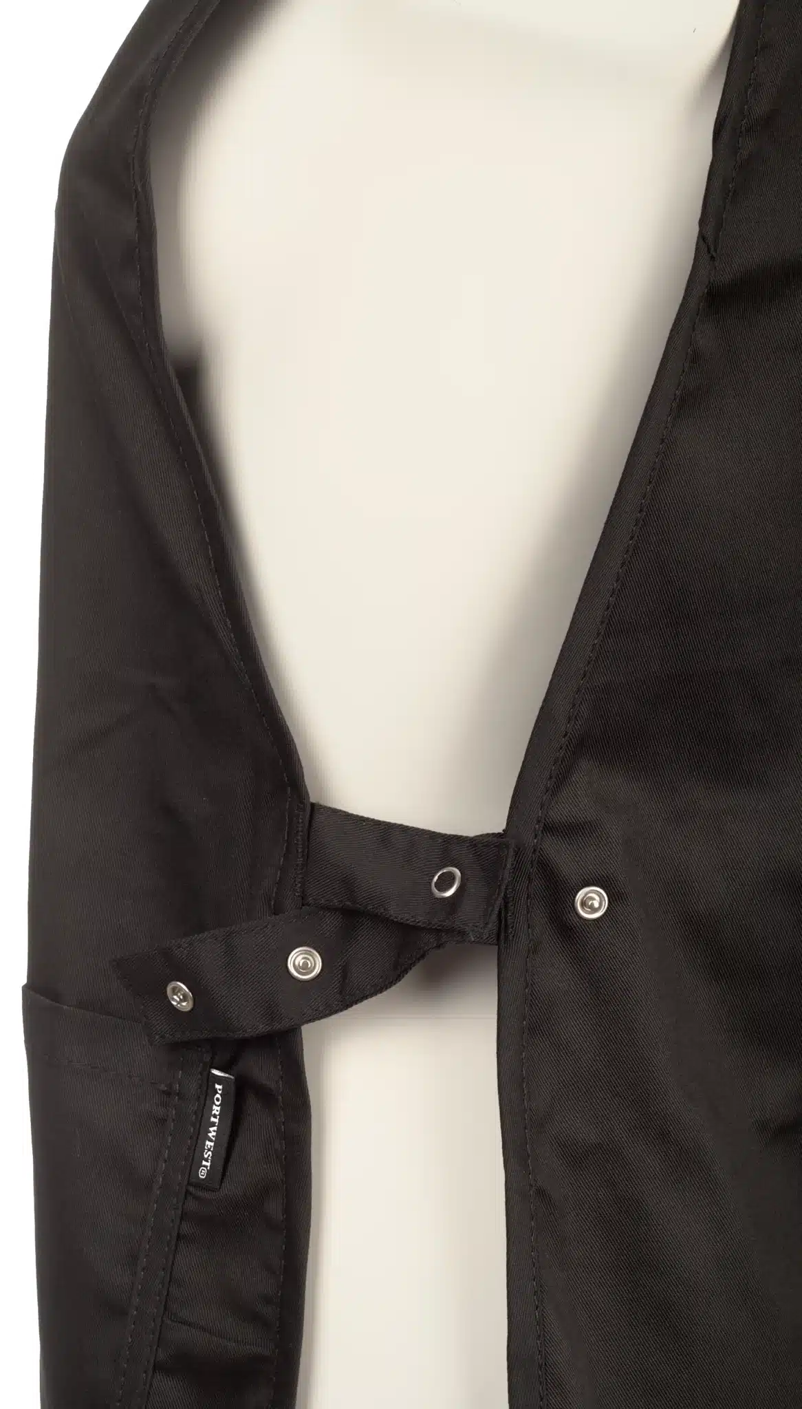 Готварска престилка Chefs черна на цвят. Моделът е производство на фирмата Portwest. Има гръб и предница и е изработен от плат смес памук и полиестер. Отстрани се закопчава с копчета тик-так, а отпред има голям джоб разделен на две части. Широчината на престилката може да се регулира според необходимото. Може да закупите престилка Chefs черна на цвят от всеки наш фирмен магазин, или да я поръчате онлайн с доставка по куриер. Предлагаме този модел още в червен цвят.