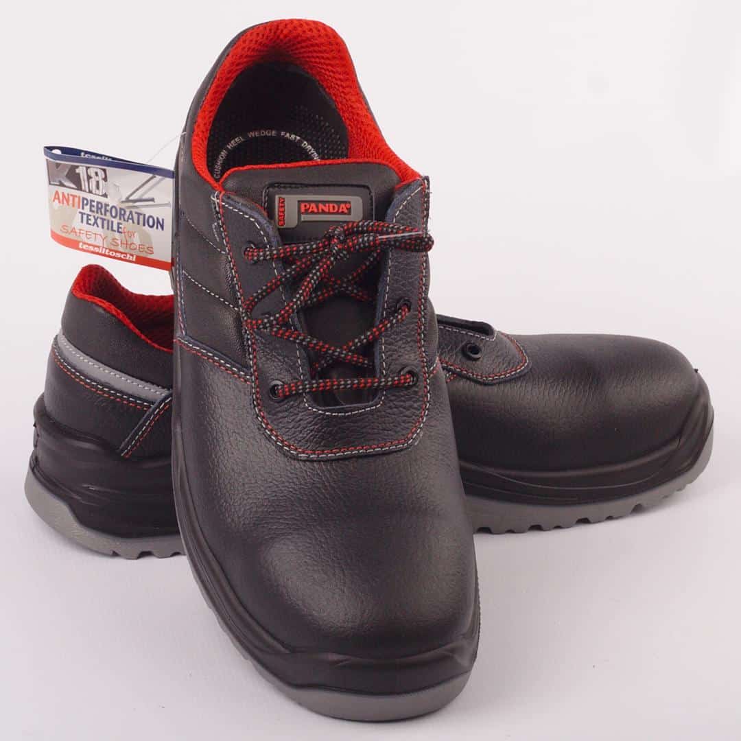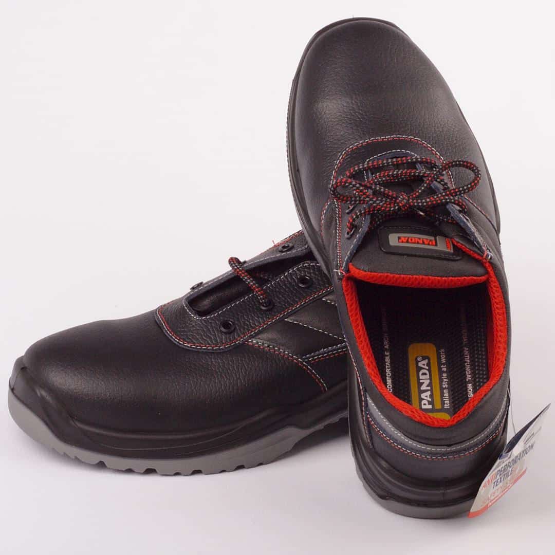 Работни обувки модел Панда от категория S3 с композитно бомбе и неметална пластина. Тези обувки са идеалното решение за вашата работна защита и комфорт. Изработени са от естествена кожа в класически черен цвят и имат светлоотразителни елементи. Специално разработените композитно бомбе и неметална пластина, предоставят оптимална защита на краката ви, без да компрометират тежестта на обувките. Подплатата на Панда S3 с бомбе и пластина е дишаща, устойчива на износване и има антибактериална и антимикробна обработка. Ходилото е полиуретаново и противохлъзгащо, има система против усукване. Обувки Панда освен от категория S3 при нас можете да намерите също от категория S1 с метално бомбе и от категория 01 без специална защита.
